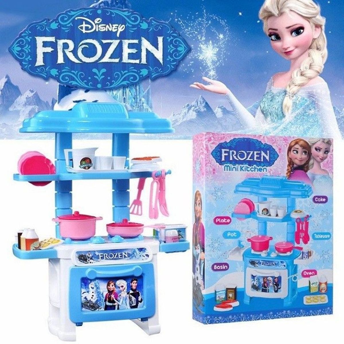 Giới thiệu bộ đồ chơi nhà bếp Elsa cho bé - Bộ đồ chơi nhà bếp Elsa cho bé được thiết kế chủ đạo là màu xanh với đầy đủ đồ đạc làm bếp, tất cả có kích thước rất nhỏ xinh và tỉ mỉ giúp bé thỏa thích sáng tạo ra nhiều món ngon. Sản phẩm được làm bằng chất liệu nhựa nguyên sinh , an toàn và không gây hại tới sức khỏe bé. Ưu điểm vượt trội của Bộ đồ chơi nhà bếp Elsa - Bộ đồ chơi nấu bếp đều được làm từ nhựa nguyên sinh an toàn cho bé, giúp các bé gái thỏa sức vui chơi, sáng tạo - Gồm rất nhiều các vật dụng dùng trong bếp, tất cả có kích thước rất nhỏ xinh và tỉ mỉ y như thật tới từng chi tiết - Thiết kế mô phỏng hoàn toàn giống thật giúp bé thỏa sức khám phá, tìm hiểu công việc nấu ăn, kích thích tối đa sự sáng tạo, độ khéo tay, kiên nhẫn - Giúp bé phát huy tối đa sức tưởng tượng, tha hồ sáng tạo những bữa tiệc hoặc những món ăn thịnh ạn nhất - Thiết kế hộp đựng tiện dụng, sau khi sử dụng, bố mẹ nhớ hướng dẫn trẻ sắp xếp lại gọn gàng, vừa tiện lợi cho những lần sử dụng sau, vừa giáo dục bé đức tính cẩn thận, ngăn nắp - Giúp bé yêu công việc nấu nướng hơn và có thể giúp mẹ trong việc nội trợ hàng ngày - Sản phẩm dành cho trẻ em trên 3 tuổi - Chất liệu sản phẩm: Nhựa - Sản xuất: Hồng Kông - Kich thước sản phẩm DxRxC: 27x21x6