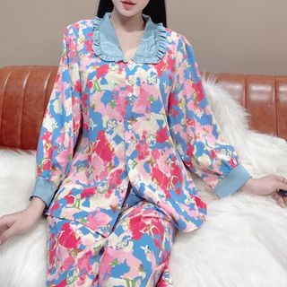 Đồ ngủ nữ pijama mặc nhà cổ bầu có bèo (Dài Dài) giá sỉ/bán buôn