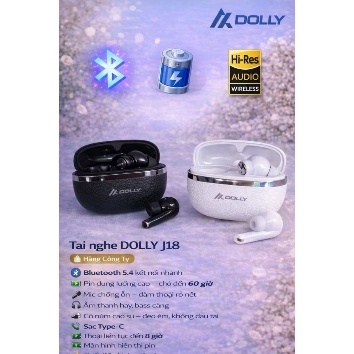 DOLLY Tai Nghe Bluetooth J18 Không Dây, Hàng Công Ty, Tích Hợp Mic Chống Ồn, Âm Thanh Rõ Ràng