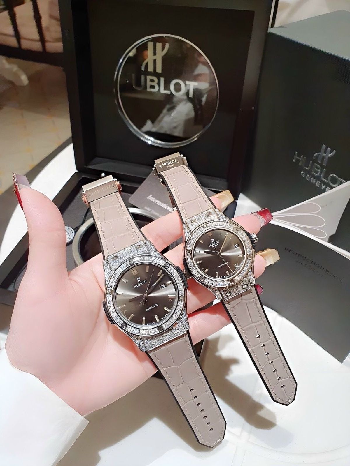 HUBLOT CƠ COUPLE (4409)Máy cơ cao cấp Thép không gỉ sétKính saphireDây cao su nẹp daSize nam:42mmSize nữ:34mmSỉ:1100/ cáiBox:150/170/550