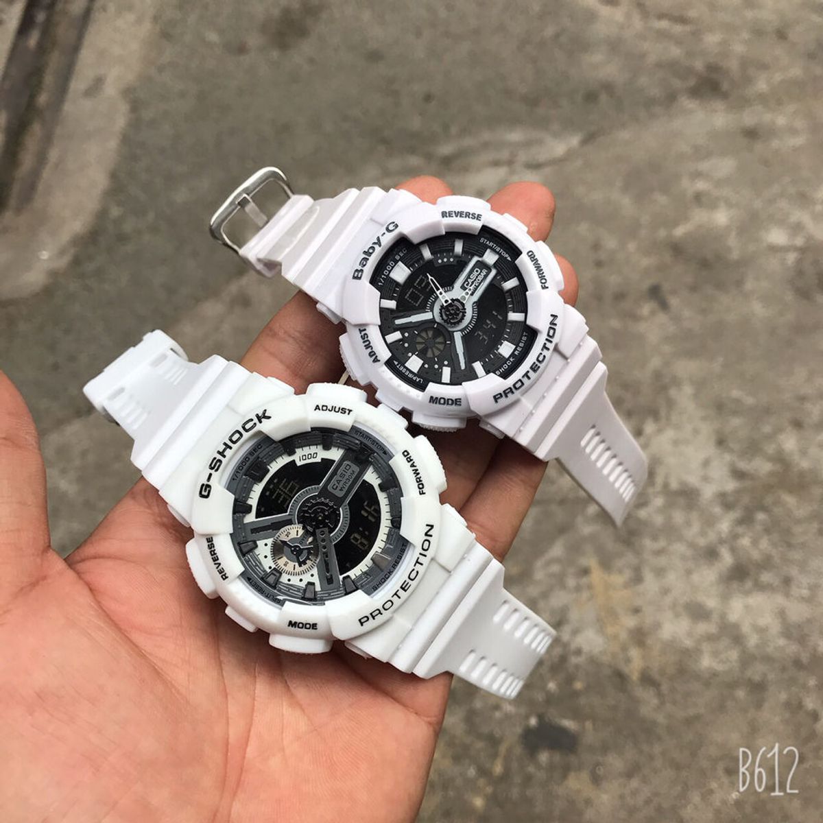 Đồng hồ điên tử dây trắng mặt đen giá sỉ/bán buôn
