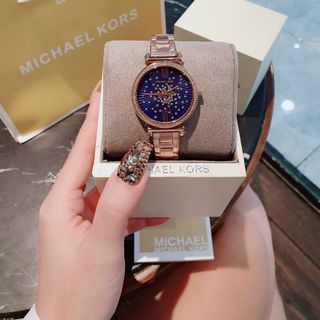 Mặt đồng hồ xanh kèm pha lê lấp lánh tựa bầu trời đầy sao