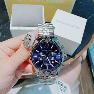 Đồng hồ Michael Kors MK8280 với phong cách thiết kế mạnh mẽ nam tính, mặt đồng hồ có nền màu xanh đen, cùng chữ số vạch trắng lớn, 6 kim và lịch ngày.