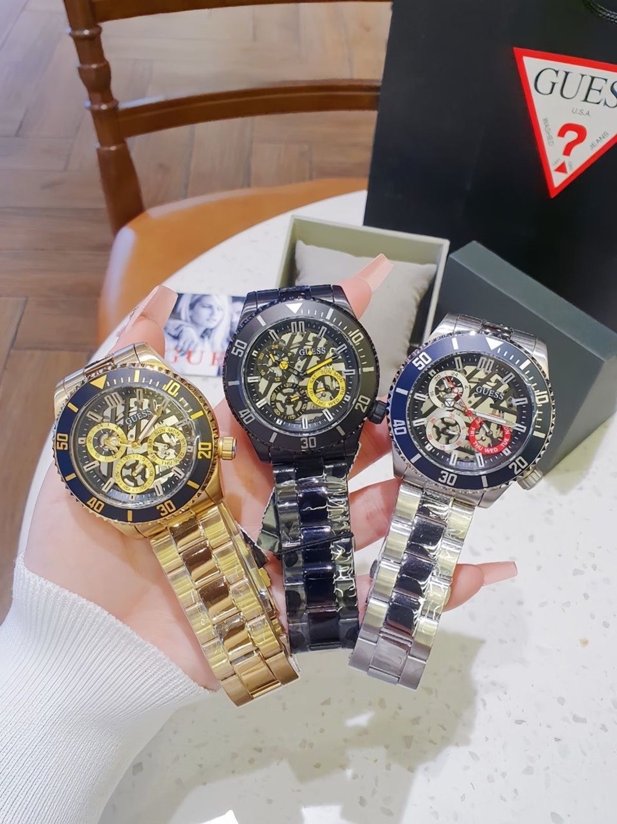 ĐỒNG HỒ NAM CAO CẤP GUECC DÂY THÉP MẶT TRÒN FULL KIM FULLBOX giá sỉ - giá bán buôn