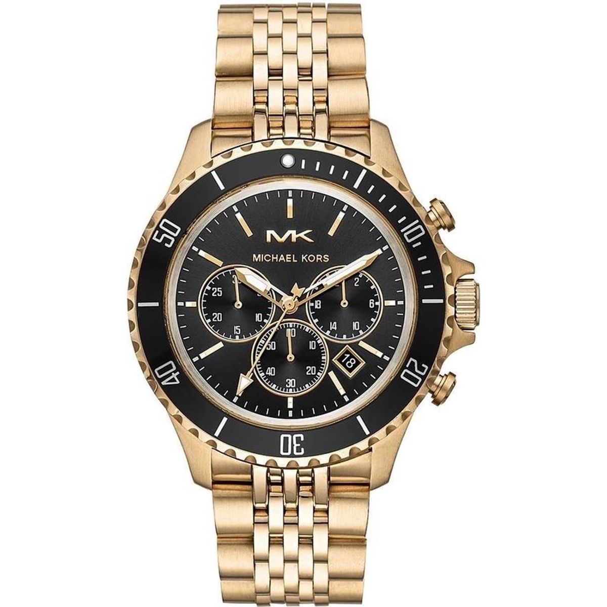 📝Michael Kors Bayville Gunmetal MK 8726 thuộc bộ sưu tập Bayville máy Chronograph cao cấp của nhà MICHAEL KORS, thiết kế dành cho phái mạnh. Dây vàng gold mặt đen nam tính, 6 kim 3 chấu thể thao khoẻ khoắn. Ô lịch ngày tiện lợi. Bộ kim phủ lumia dạ quang dễ xem giờ trong đêm. Dây kim loại cực sang cho phép chủ nhân thoải mái phối hợp với trang phục.