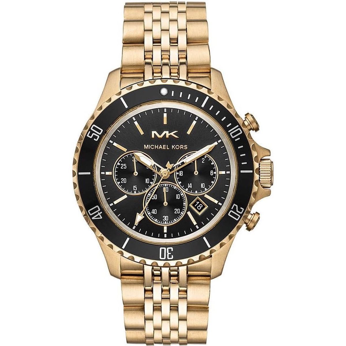 📝Michael Kors Bayville Gunmetal MK 8726 thuộc bộ sưu tập Bayville máy Chronograph cao cấp của nhà MICHAEL KORS, thiết kế dành cho phái mạnh. Dây vàng gold mặt đen nam tính, 6 kim 3 chấu thể thao khoẻ khoắn. Ô lịch ngày tiện lợi. Bộ kim phủ lumia dạ quang dễ xem giờ trong đêm. Dây kim loại cực sang cho phép chủ nhân thoải mái phối hợp với trang phục.