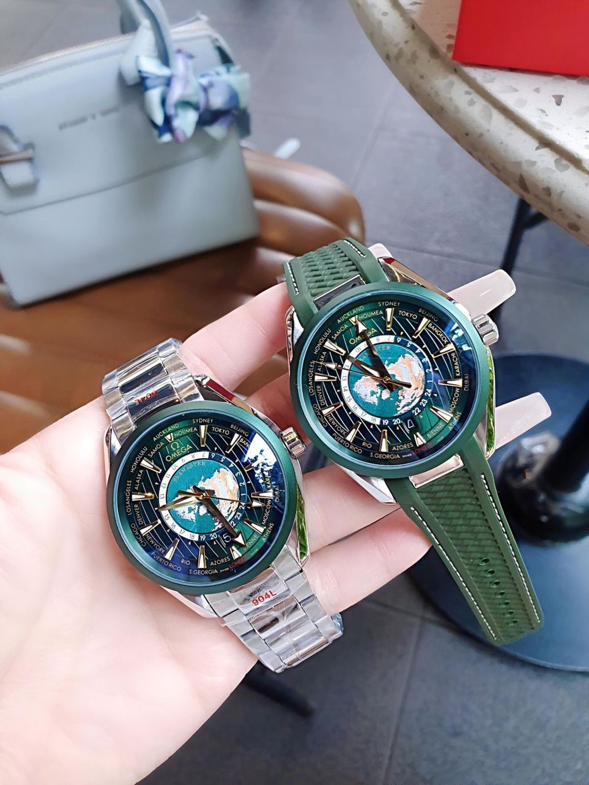 ĐỒNG HỒ NAM CAO CẤP ÔMÊGHA MÁY CƠ LỘ ĐÁY MẶT XANH LÁ giá sỉ/bán buôn