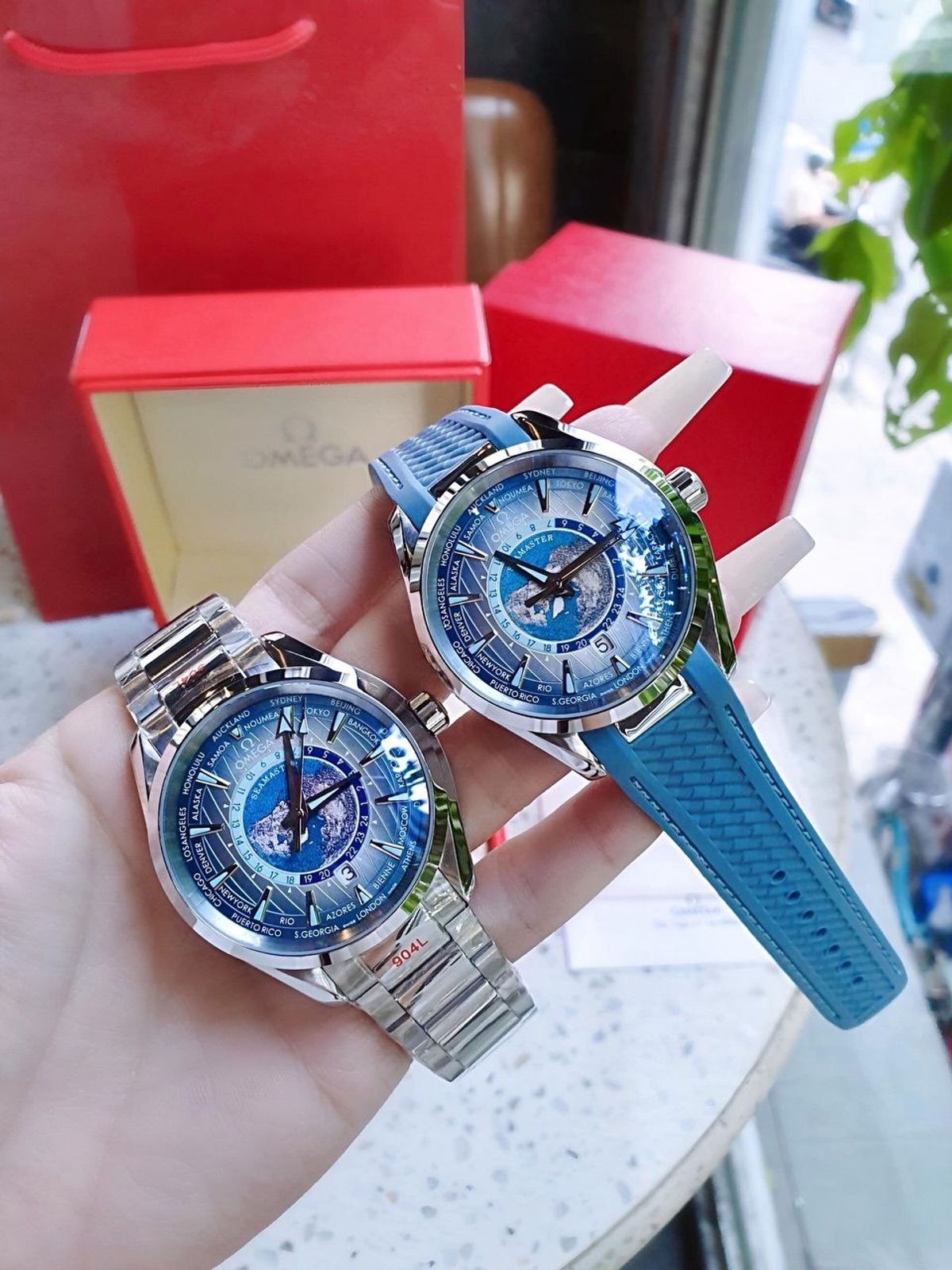 ĐỒNG HỒ NAM CAO CẤP ÔMÊGHA MÁY CƠ LỘ ĐÁY MẶT XANH NHẠT DÂY THÉP VÀ CAO SU giá sỉ/bán buôn