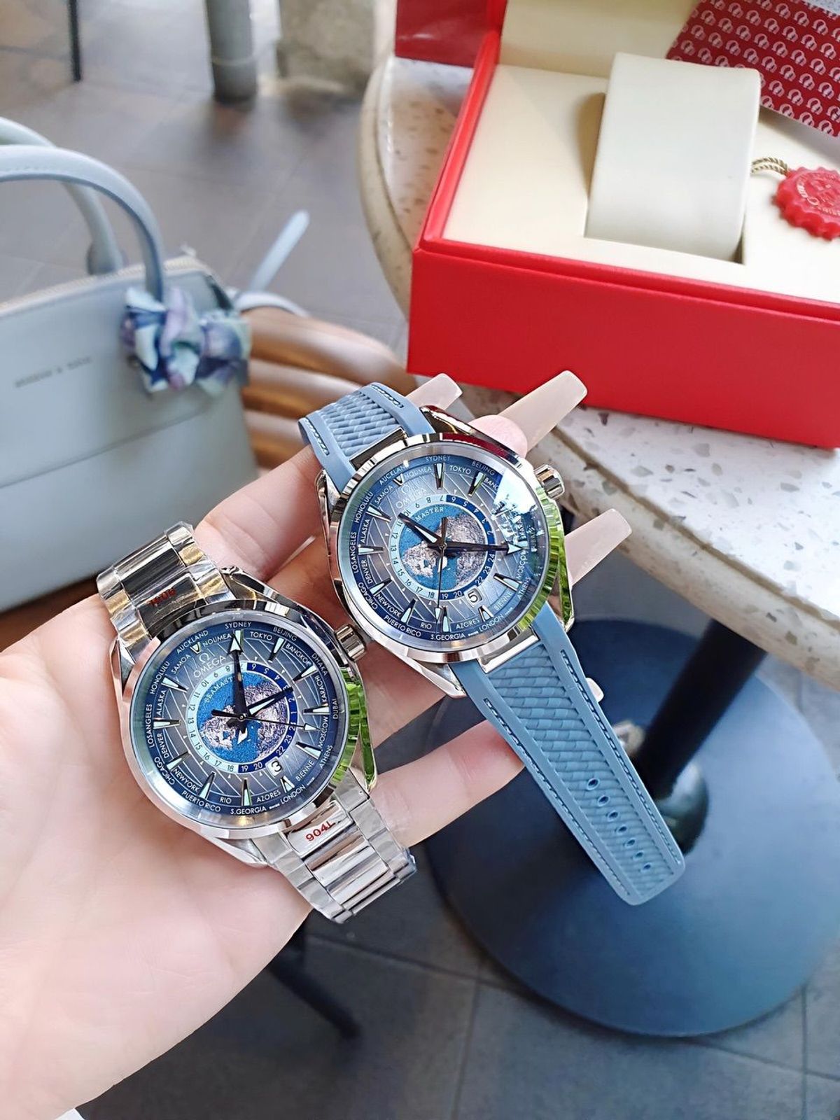 ĐỒNG HỒ NAM CAO CẤP ÔMÊGHA SEAMASTER MÁY CƠ XANH NHẠT DÂY THÉP VÀ SILICON giá sỉ/bán buôn
