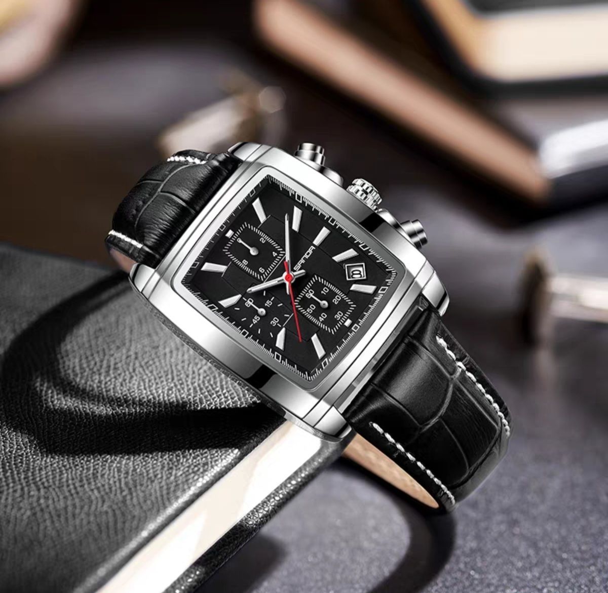 Đồng hồ NAM chính hãng SANDA 5303 dây da viền kim loại chống nước tuyệt đối
