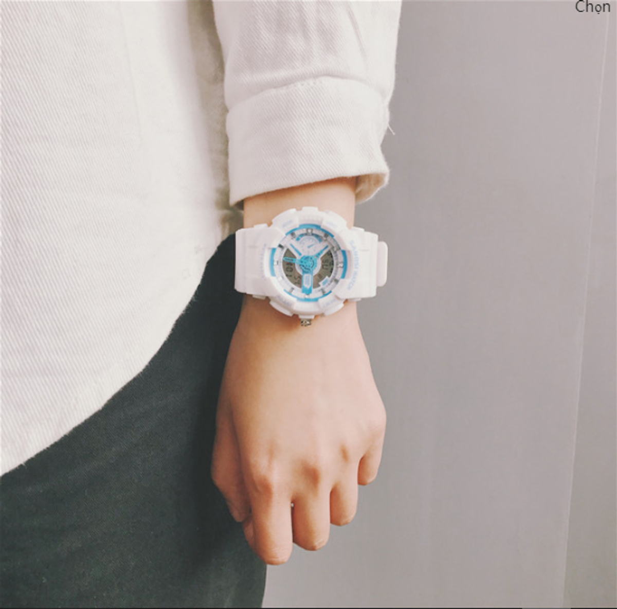 - Đồng hồ chạy cả kim và màn hình điện tử, điều chỉnh bằng 5 nút khác nhau