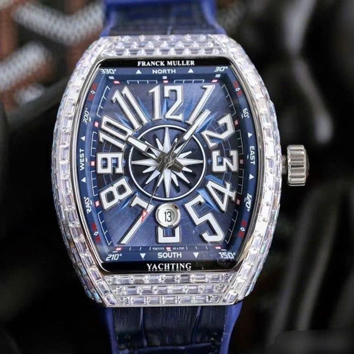 💎 Dây: Da cao su xanh, khóa bấm Franck Muller