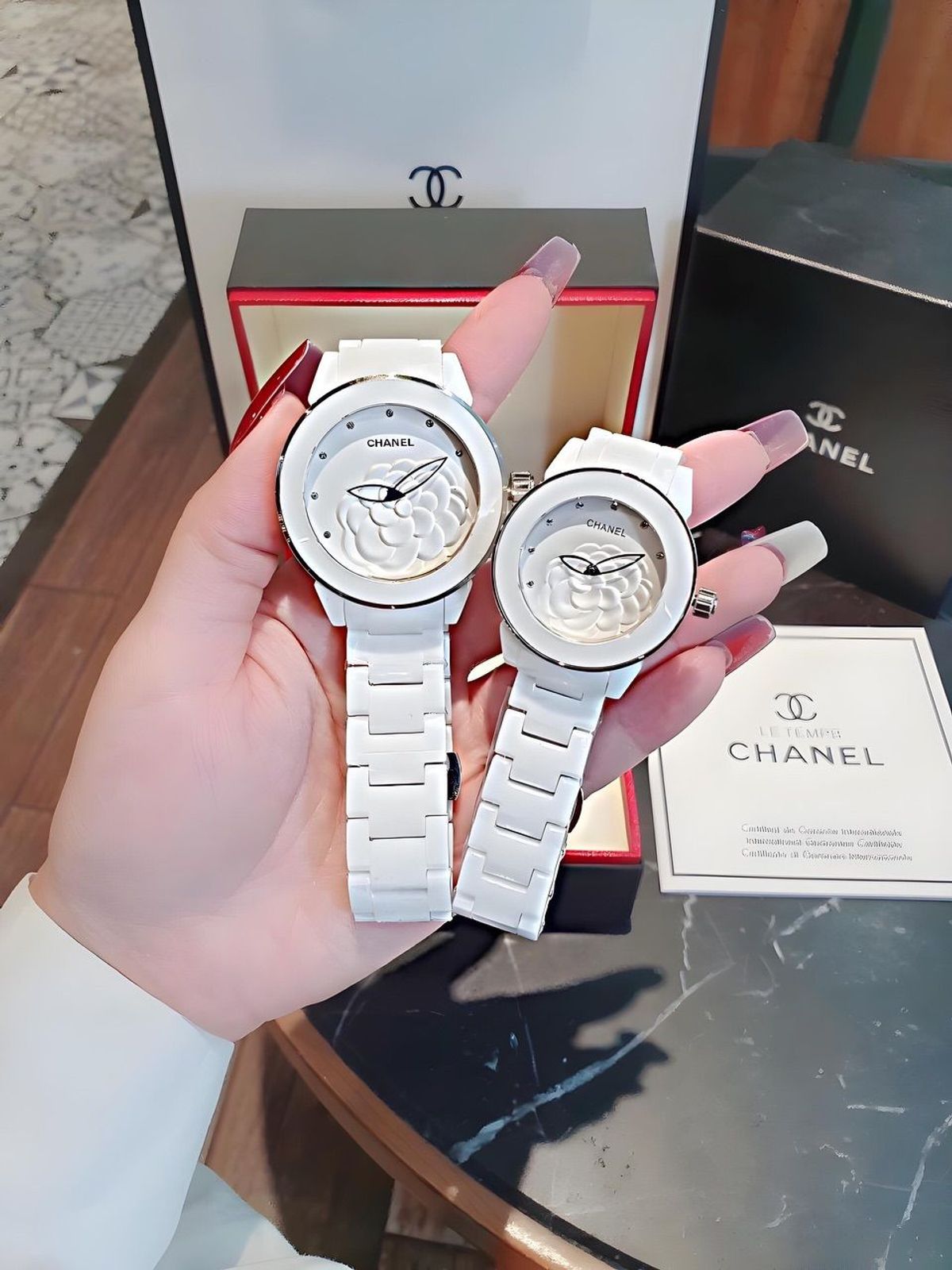 ĐỒNG HỒ NỮ CAO CẤP CHANEU ĐÁ CERAMIC TRẮNG MẶT HOA HAI SIZE giá sỉ/bán buôn