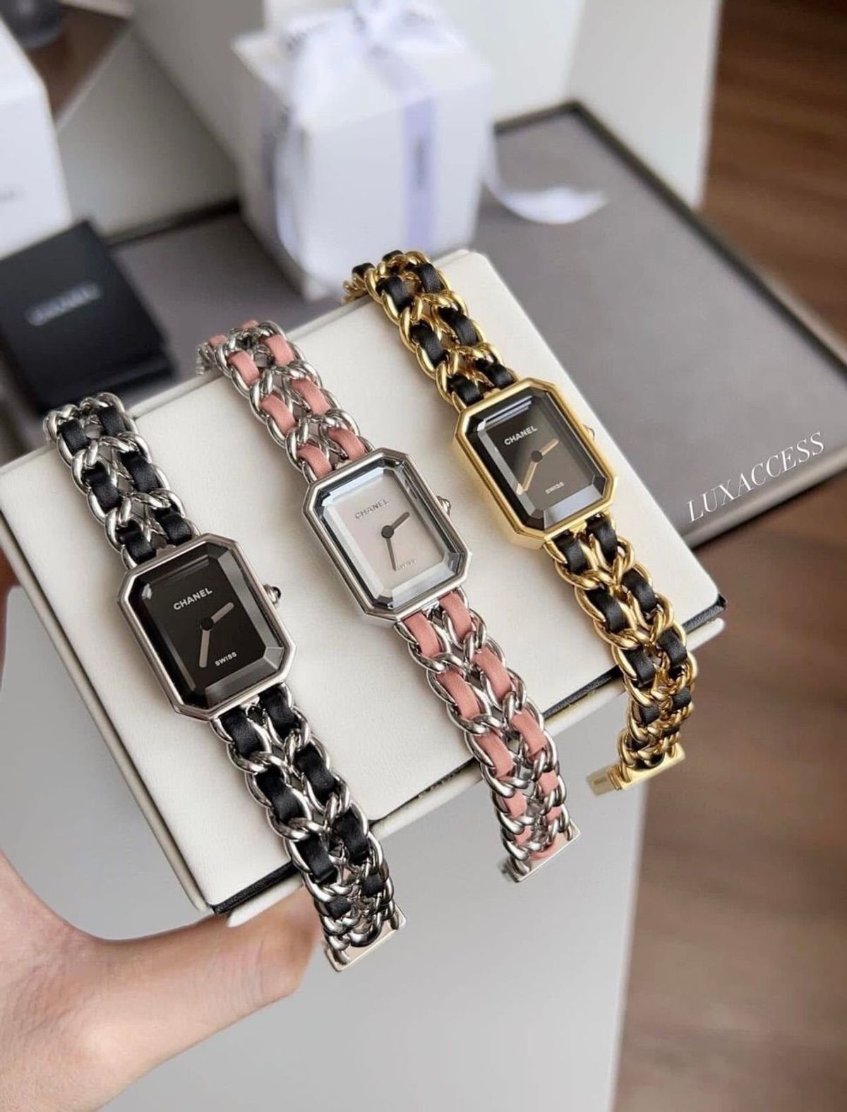 📝Mẫu đồng hồ huyền thoại của Chanel Premiere Chain chưa bao giờ lỗi mốt, với thiết kế dây da và thép đan chéo thanh lịch và sang trọng.