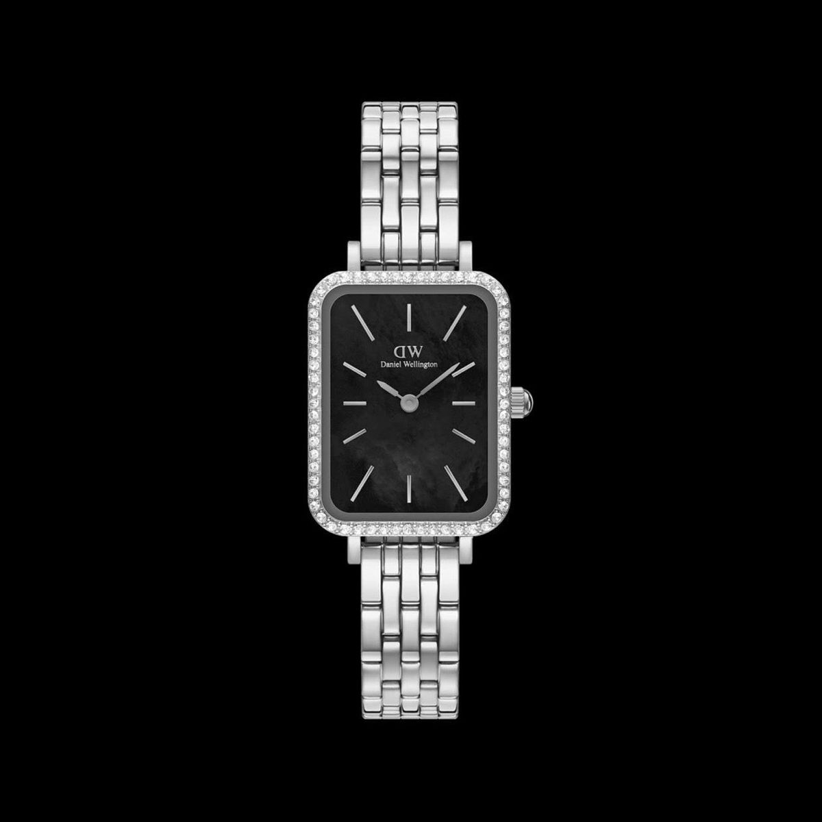 🏵Nằm trong bộ sưu tập DW Petite nhưng mẫu đồng hồ nữ Quardo Lumine Bezel 5-Link Two-Tone Mop lại đem đến vẻ ngoài ấn tượng hơn đàn chị. Đang được rất nhiều người yêu thích nhờ thiết kế dẹp mắt. Nó là một sản phẩm hấp dẫn với mặt số hình chữ nhat mỏng tinh xảo và thanh lịch. Điểm nhấn nằm ở phần dây đeo kim loại 5 mắt xích tinh tế. Và tiếp đến phải kể đến viền Bezel đính đá pha lê lấp lánh chiếm trọn trái tim của phái đẹp. Nó làm cho chiếc đồng hồ vốn đã sáng bóng lại càng trở nên lộng lẫy hơn bao giờ hết.