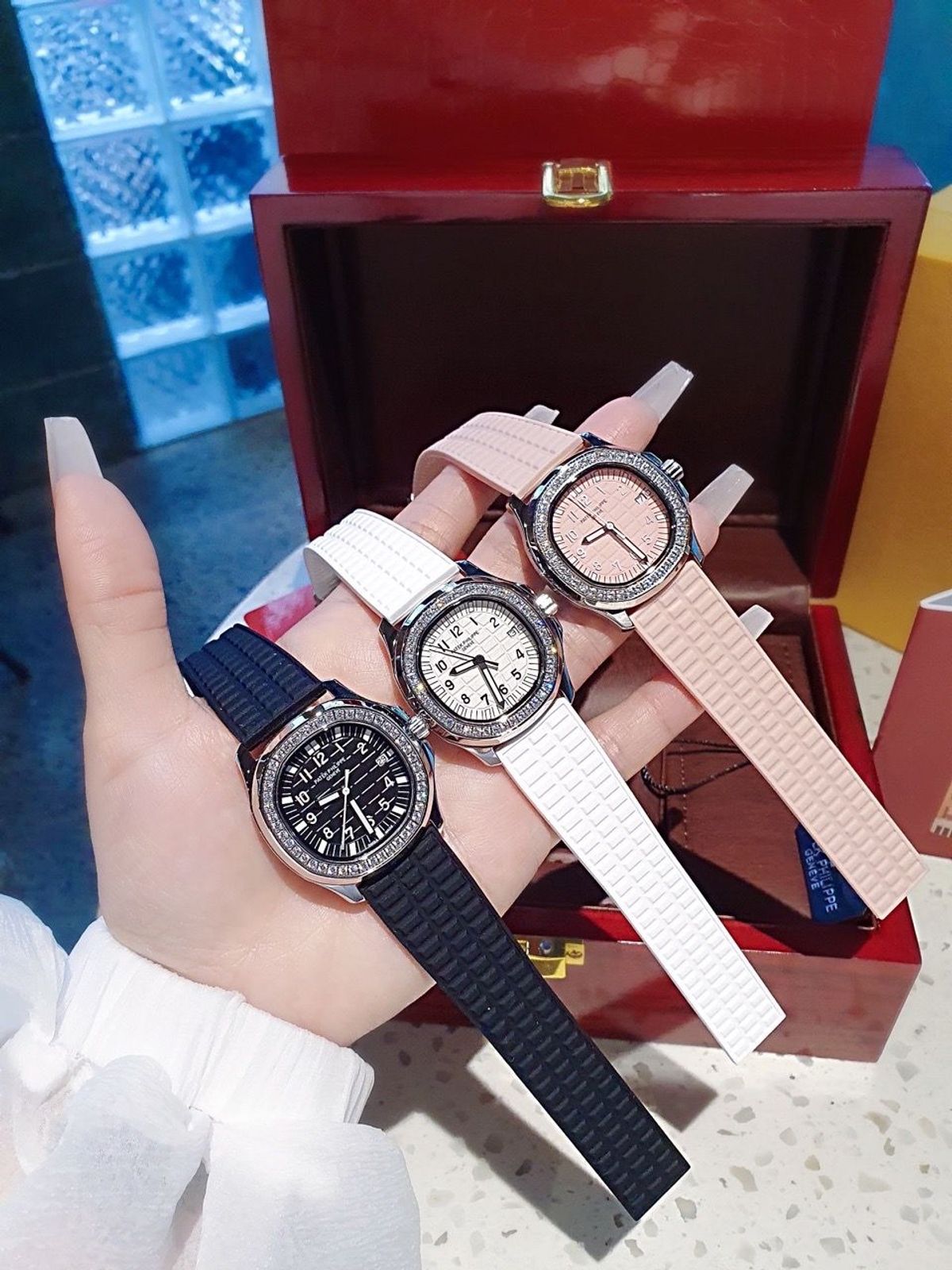 💘Đồng Hồ Nữ Patek Philippe Nautilus Đính Đá Silver Dây Silicone full màu( siêu hot)