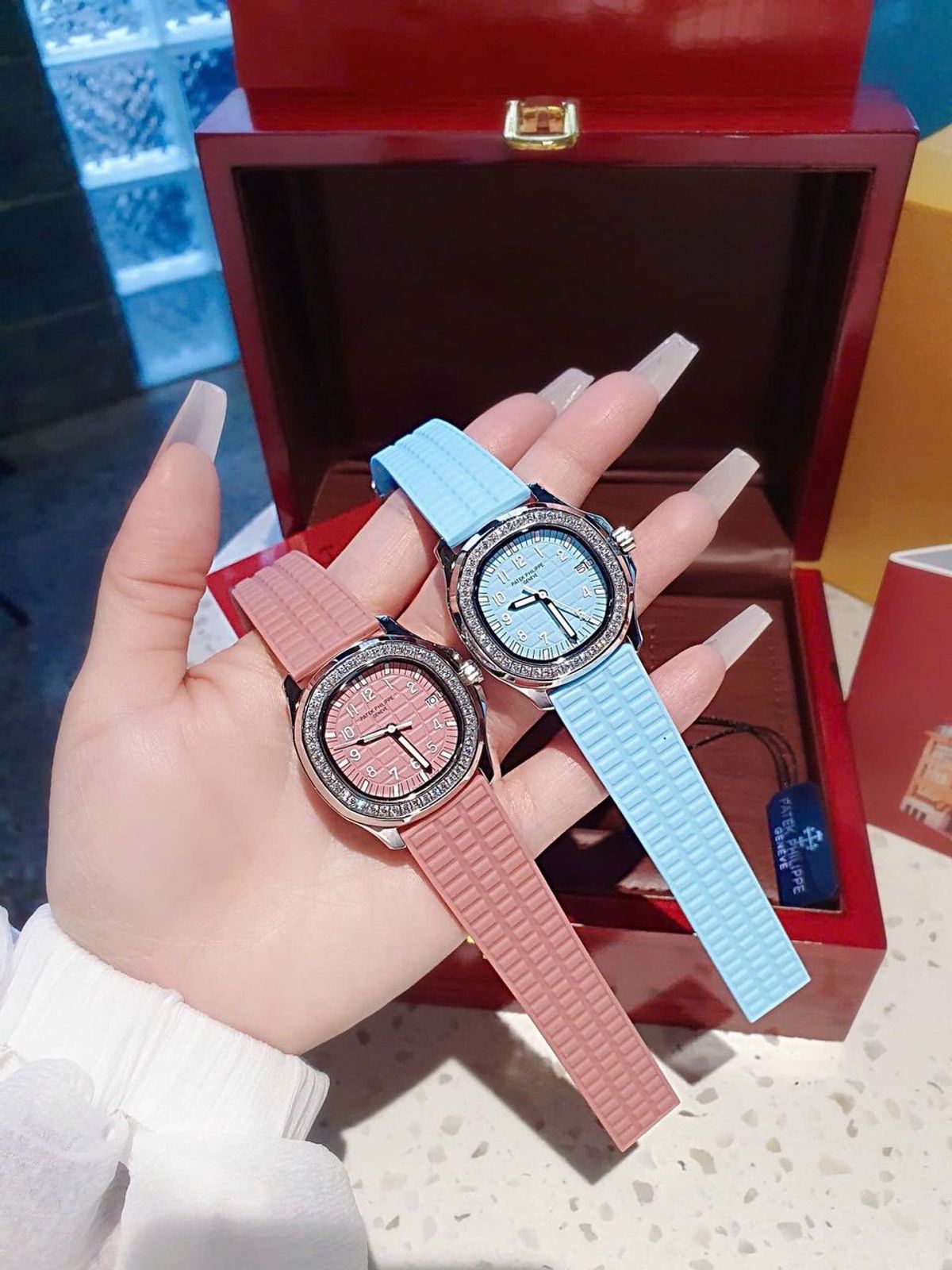 💘Đồng Hồ Nữ Patek Philippe Nautilus Đính Đá Silver Dây Silicone full màu( siêu hot)