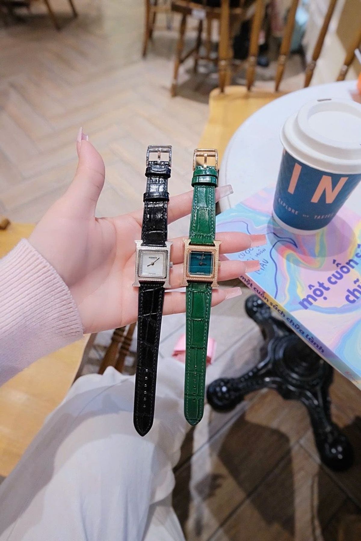 📑HEURE H WATCH MINI MODEL là dòng sản phẩm đồng hồ dây da cao cấp mới của HERMES, mặt số Malachite nạm đá.