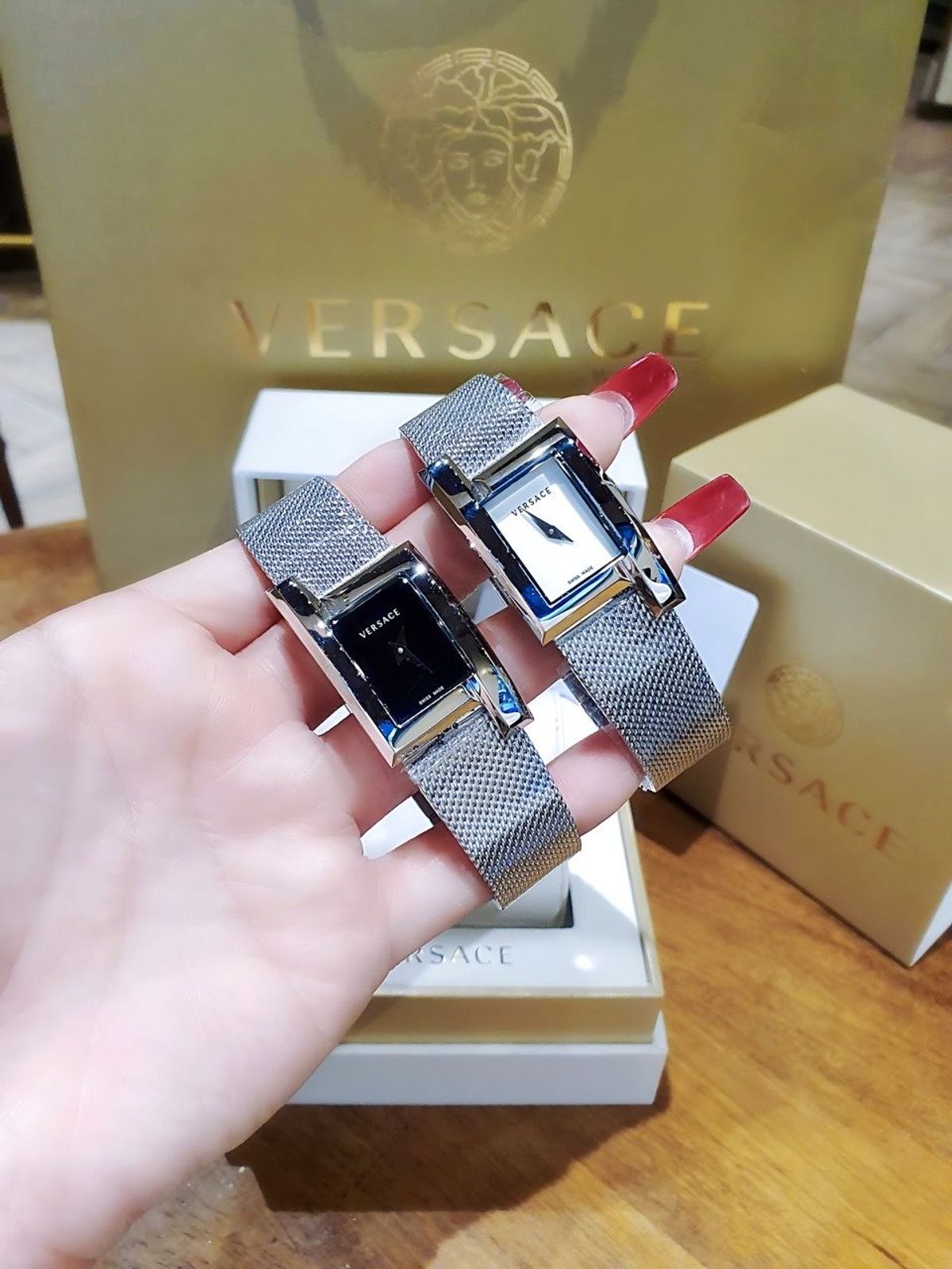ĐỒNG HỒ NỮ CAO CẤP VERSA GRECA DÂY LƯỚI MẶT CHỮ NHẬT NIỀNG THÉP giá sỉ/bán buôn