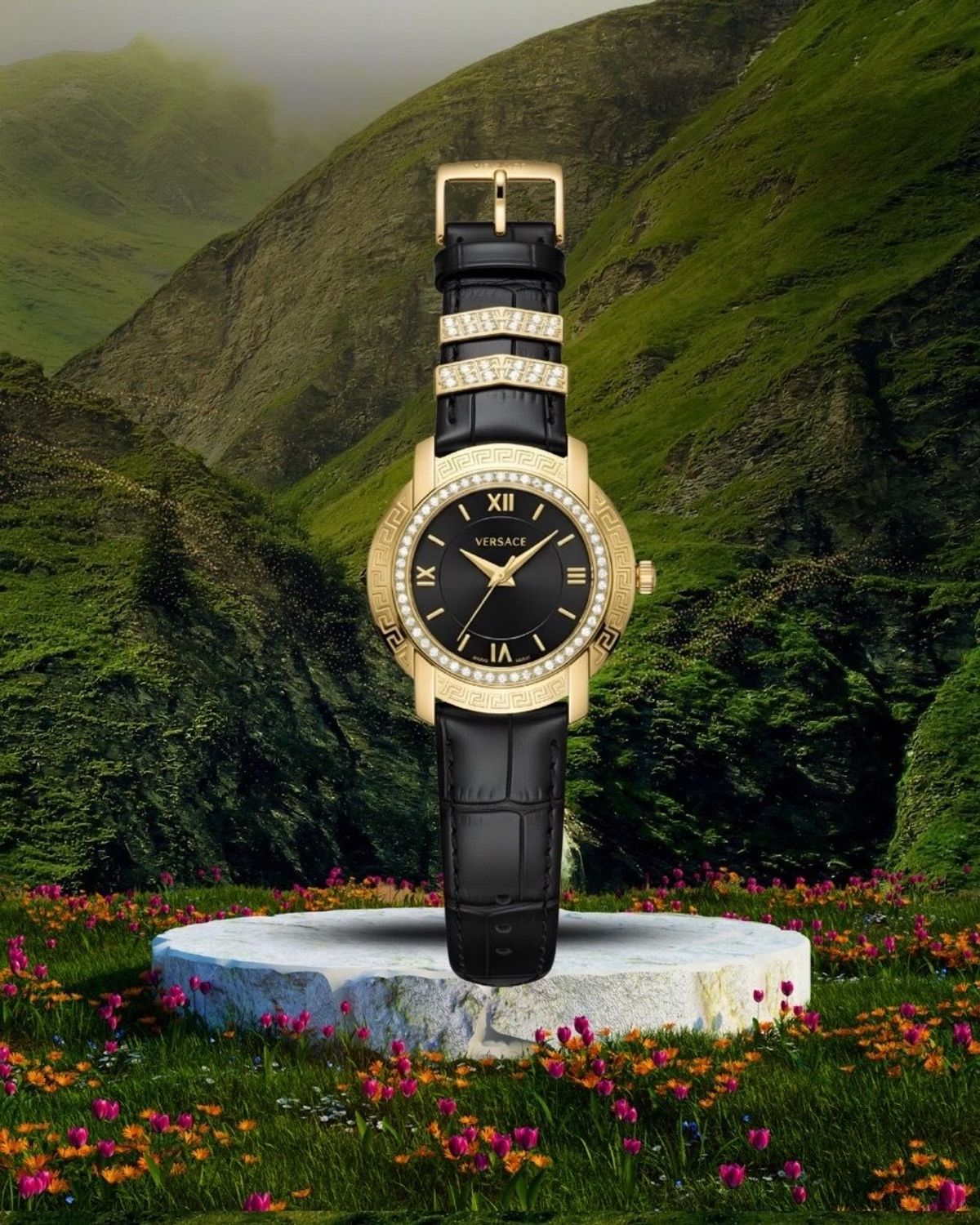 ĐỒNG HỒ NỮ CAO CẤP VERSEC DÂY DA ĐEN NIỀNG THÉP giá sỉ/bán buôn