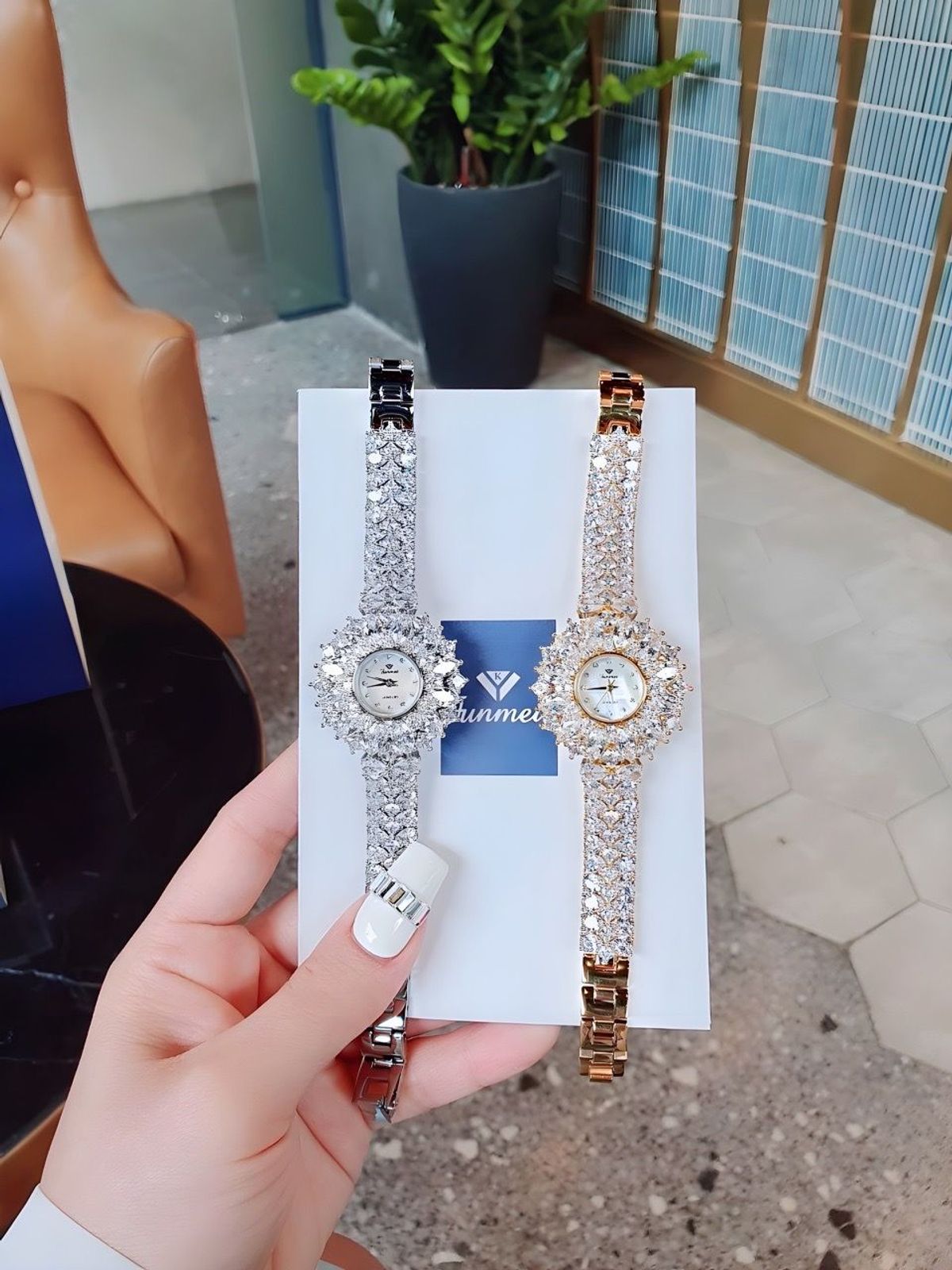 💎 thiết kế đính đá swaroski toàn bộ dây và mặt tạo thành 1 khối bắt sáng vô cùng nổi bật, mặt đồng hồ được đính kết tỉ mỉ như những đóa hoa pha lê sang trọng