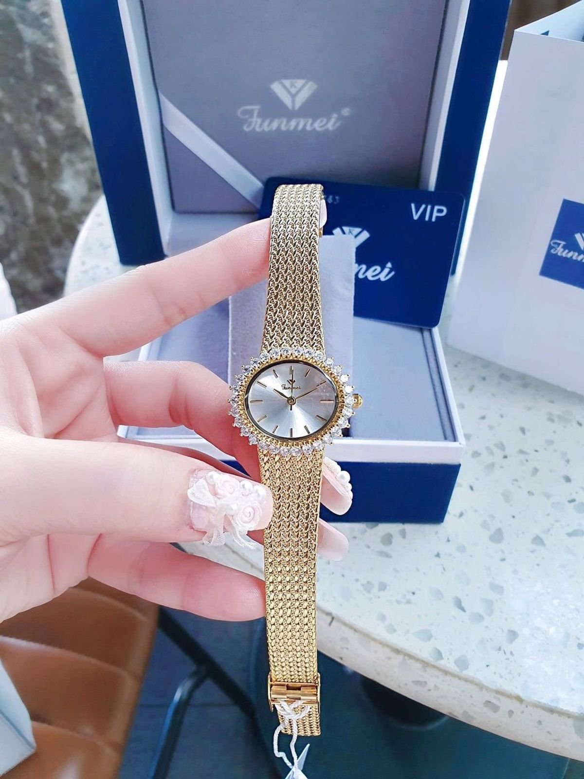 ĐỒNG HỒ NỮ CHÍNH HÃNG FUNMEI F2140 MẶT OVAN VIỀN ĐÁ DÂY LƯỚI FULLBOX TEM giá sỉ/bán buôn