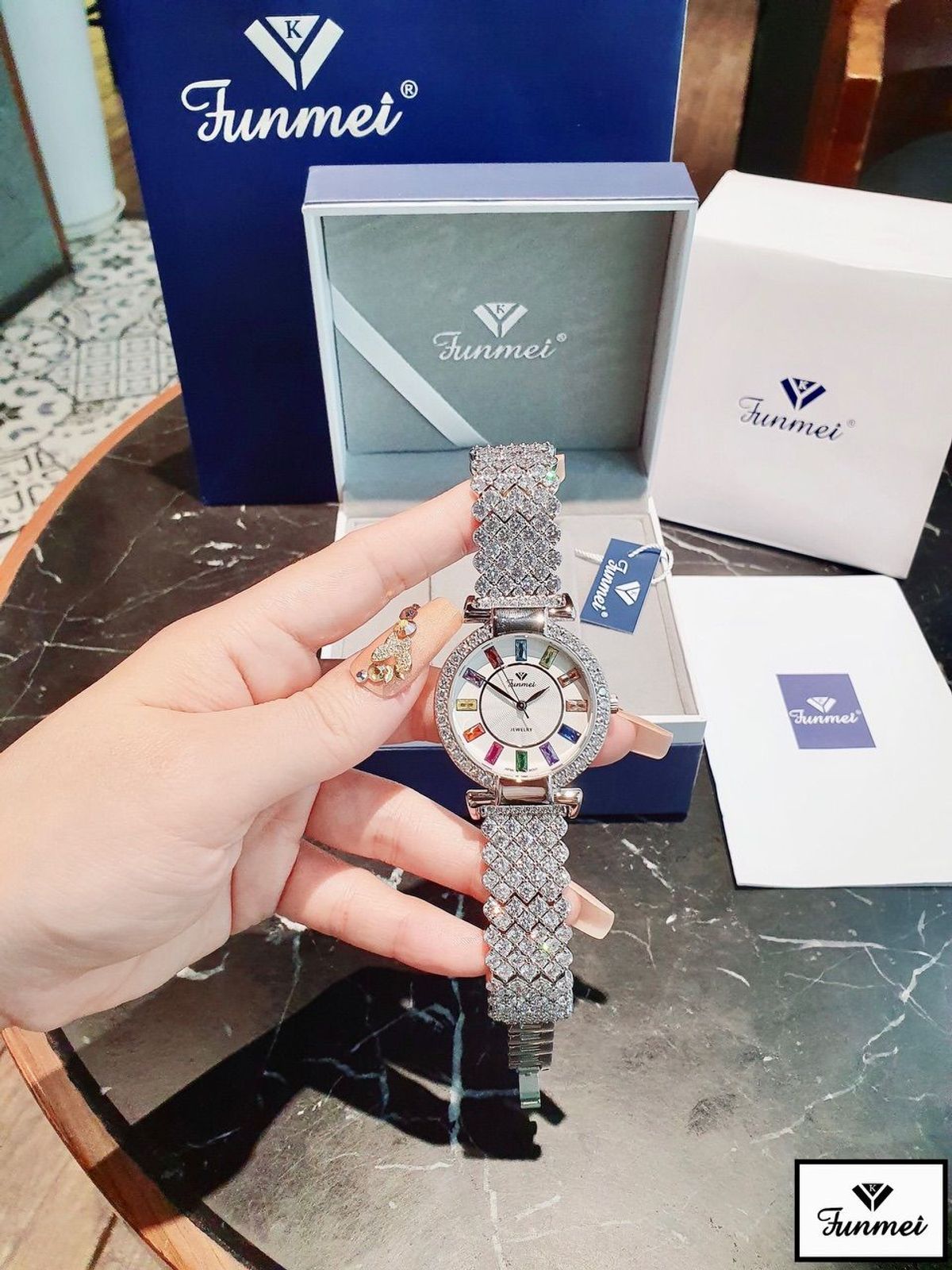 ĐỒNG HỒ NỮ CHÍNH HÃNG FUNMEI F4604 FULL ĐÁ PHA LÊ ĐI KÈM TEM KÍCH HOẠT ĐIỆN TỬ giá sỉ/bán buôn