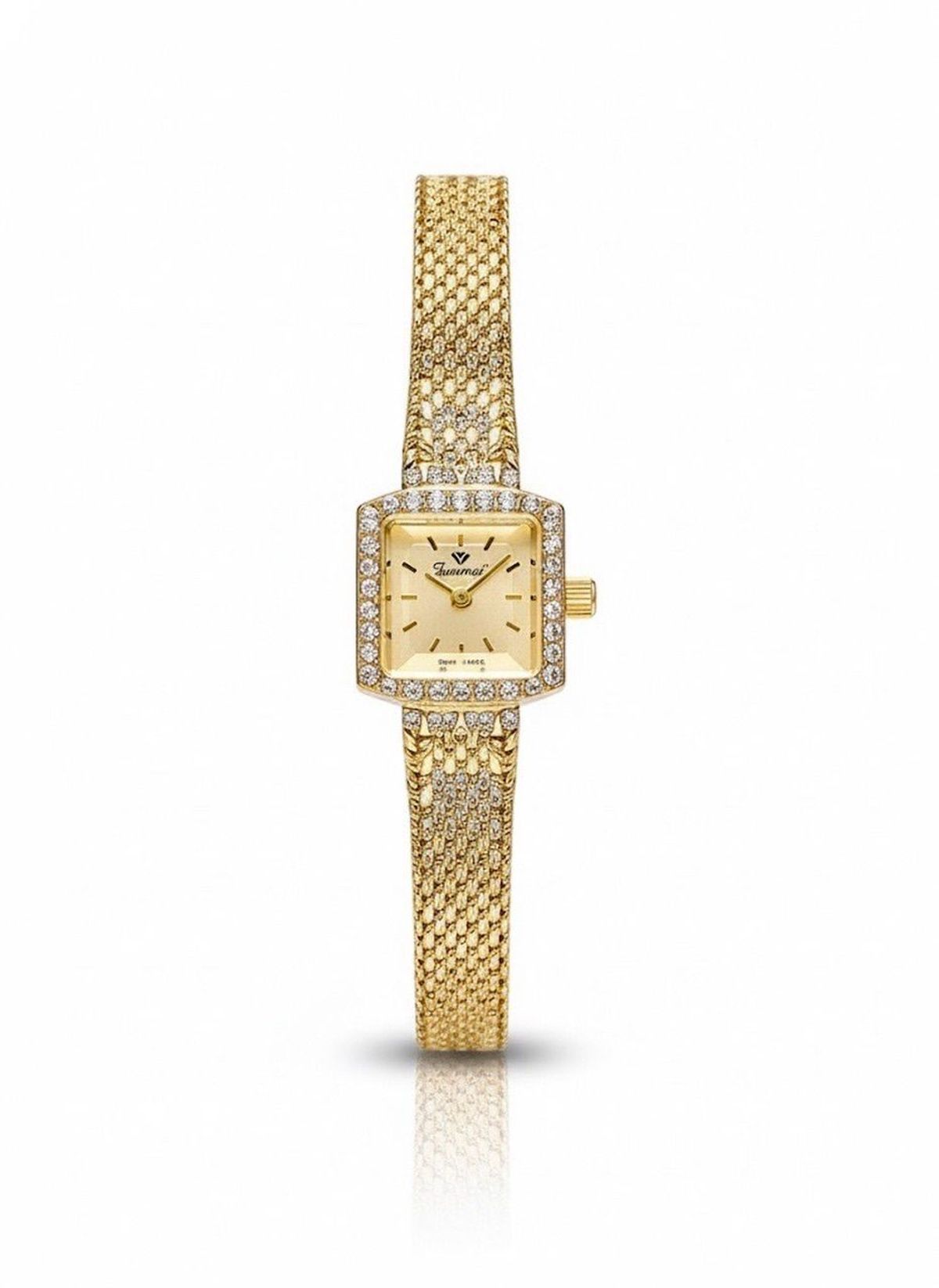 ĐỒNG HỒ NỮ CHÍNH HÃNG FUNMEI FL2108 MẶT VUÔNG DÂY LƯỚI VÀNG FULLBOX giá sỉ - giá bán buôn