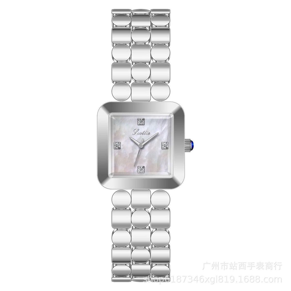 ĐỒNG HỒ NỮ CHÍNH HÃNG SCOTTIE DÂY THÉP BẠC MẶT VUÔNG XÀ CỪ FULLBOX giá sỉ - giá bán buôn
