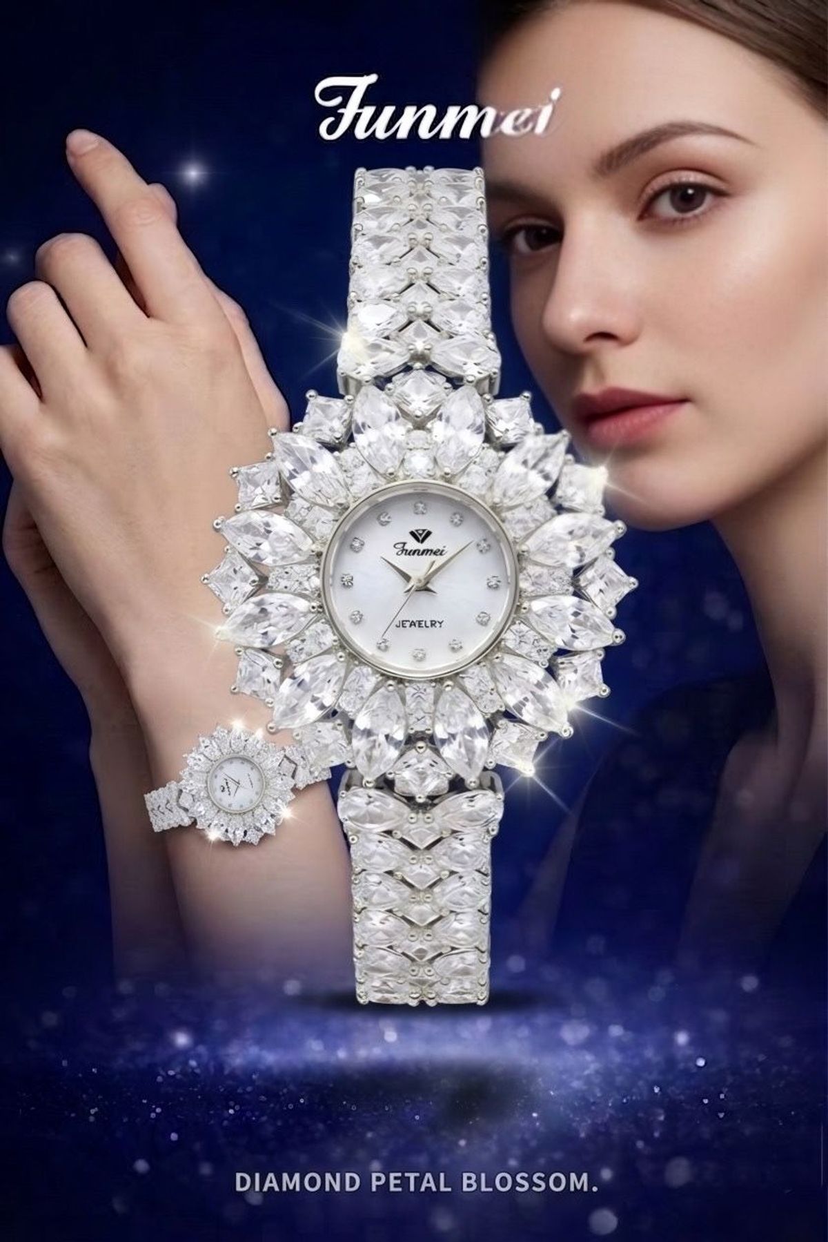 💎 thiết kế đính đá swaroski toàn bộ dây và mặt tạo thành 1 khối bắt sáng vô cùng nổi bật, mặt đồng hồ được đính kết tỉ mỉ như những đóa hoa pha lê sang trọng