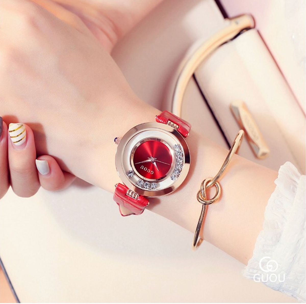 -Đồng hồ Guou thì Viền mặt đồng hồ sẽ có màu vàng đồng, sẽ có màu vàng chanh.