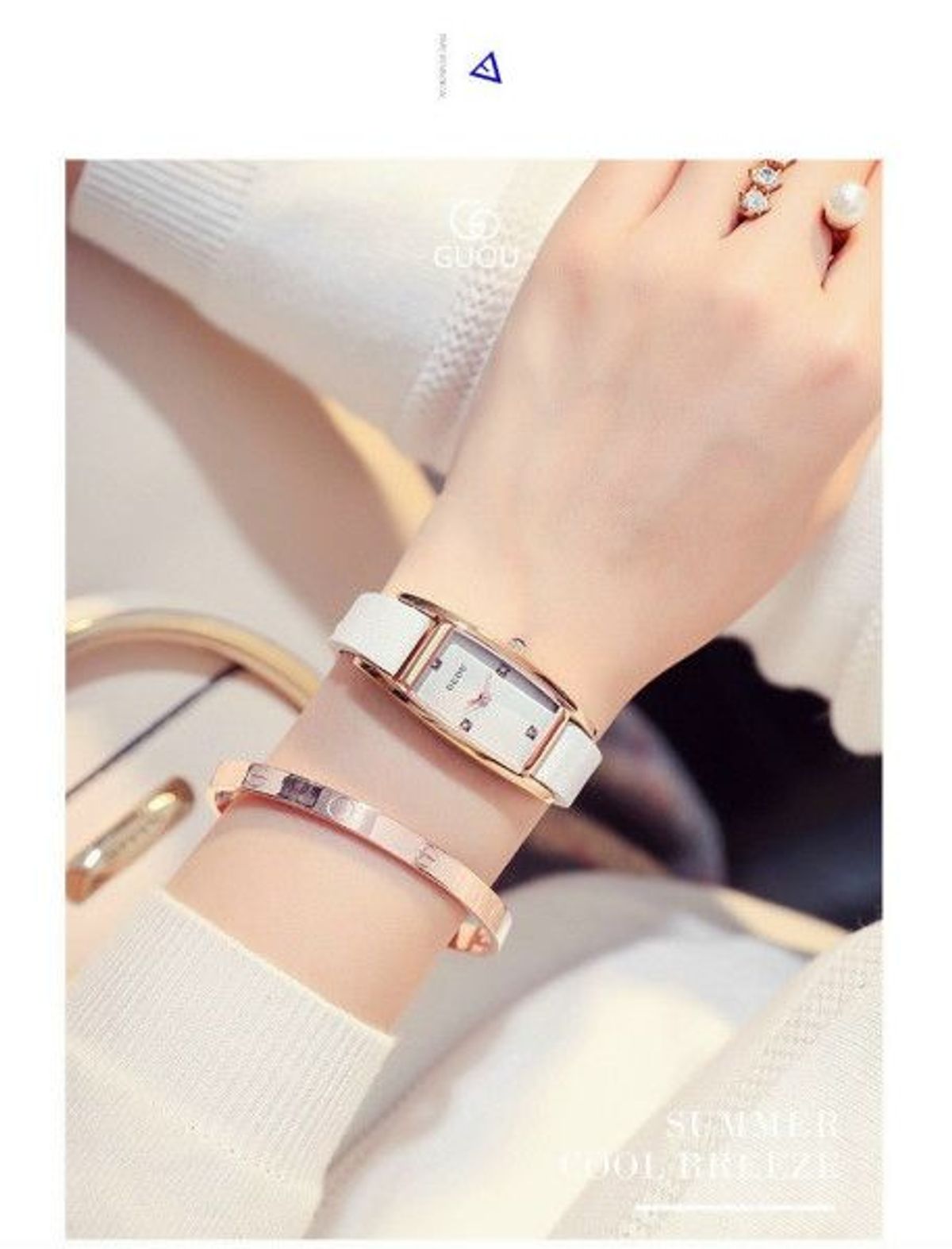 Đồng hồ Nữ GUOU 8085 mặt chữ nhật dây da