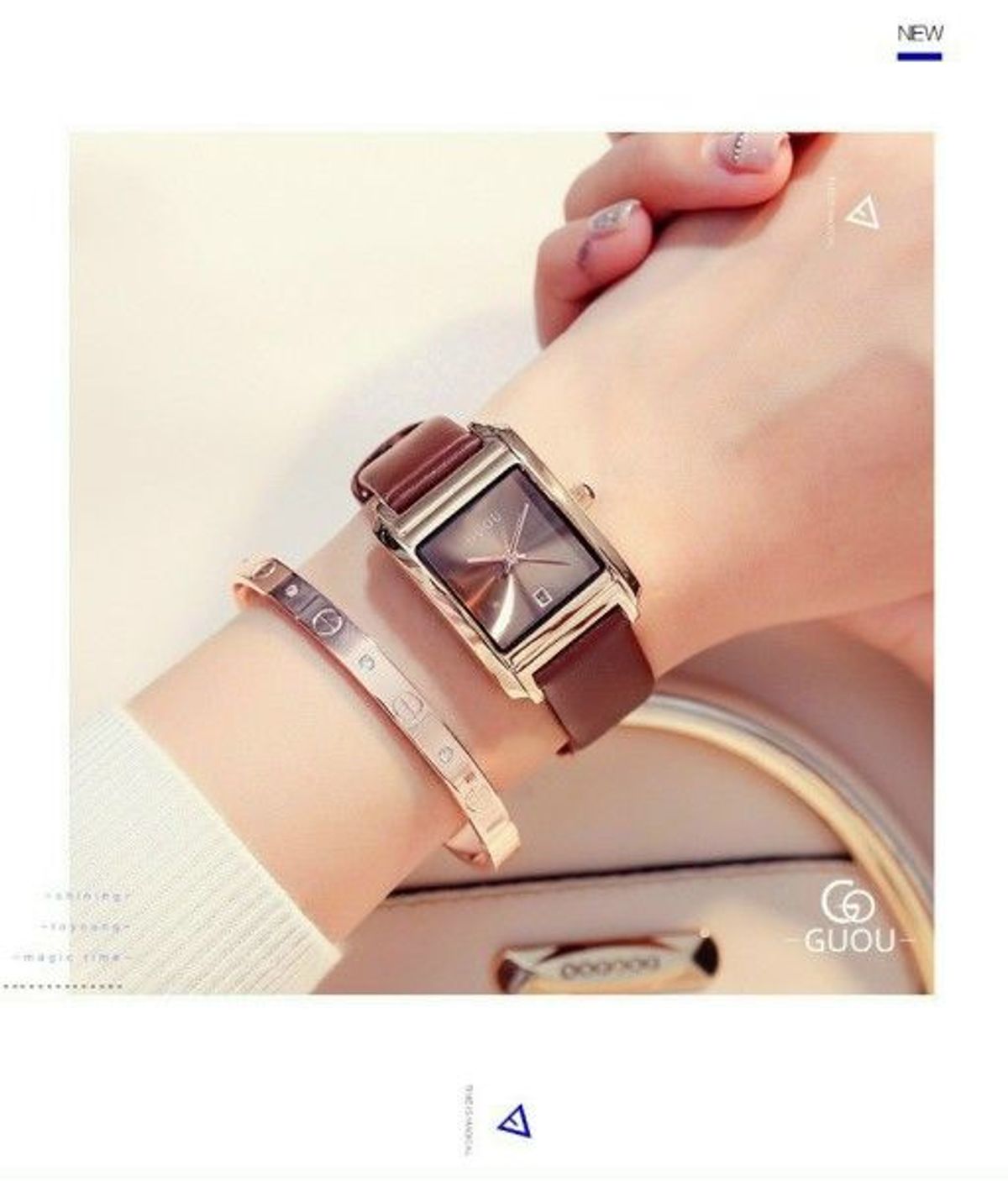 Đồng hồ Nữ GUOU 8089 mặt chữ nhật dây da