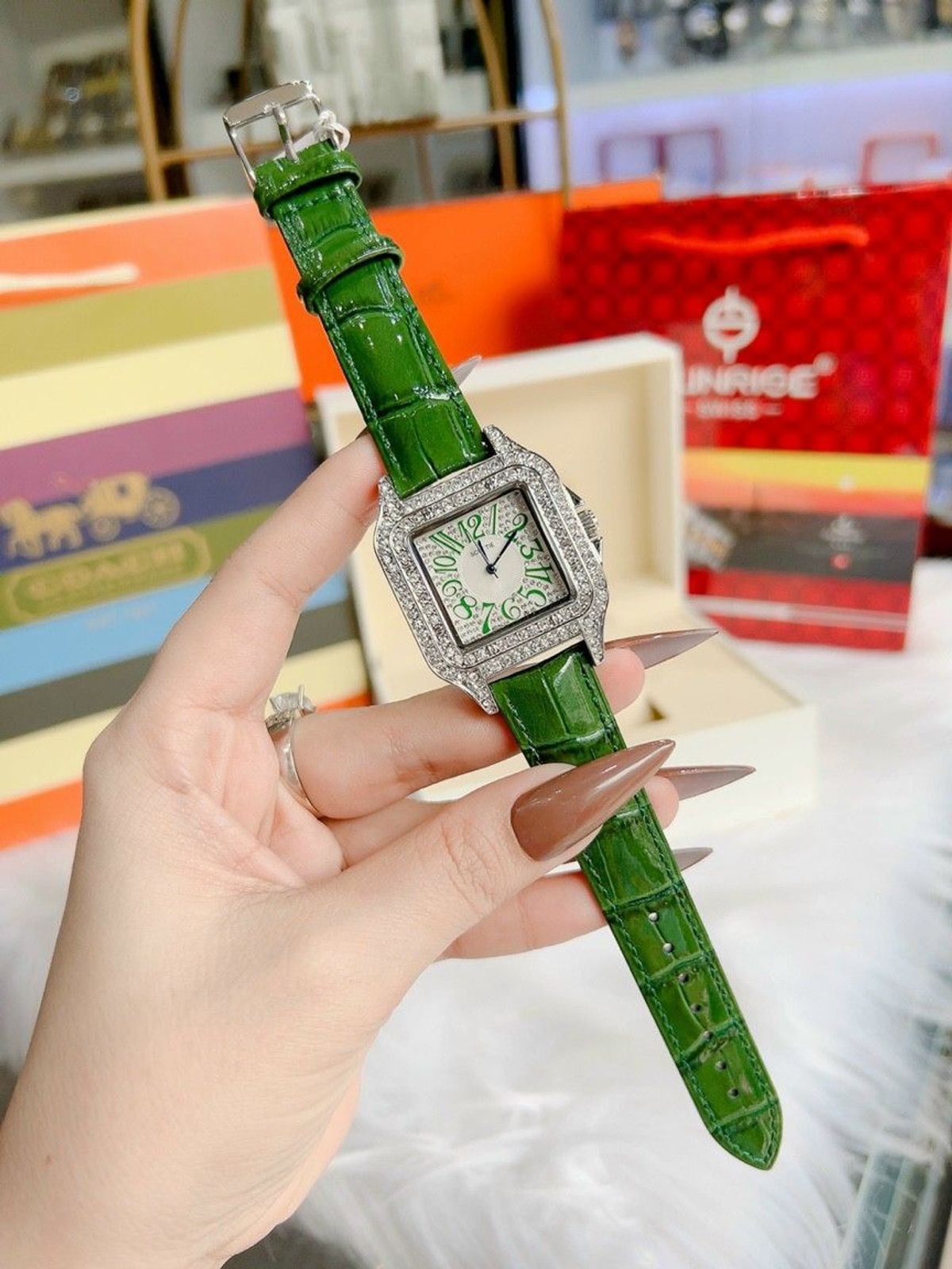 Đồng hồ Nữ SCOTTIE 9127 dây da thiết kế mặt vuông đính đá