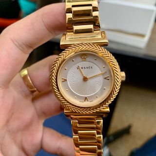Đồng hồ nữ Versaces vỏ vàng mặt trắng dây kim loại