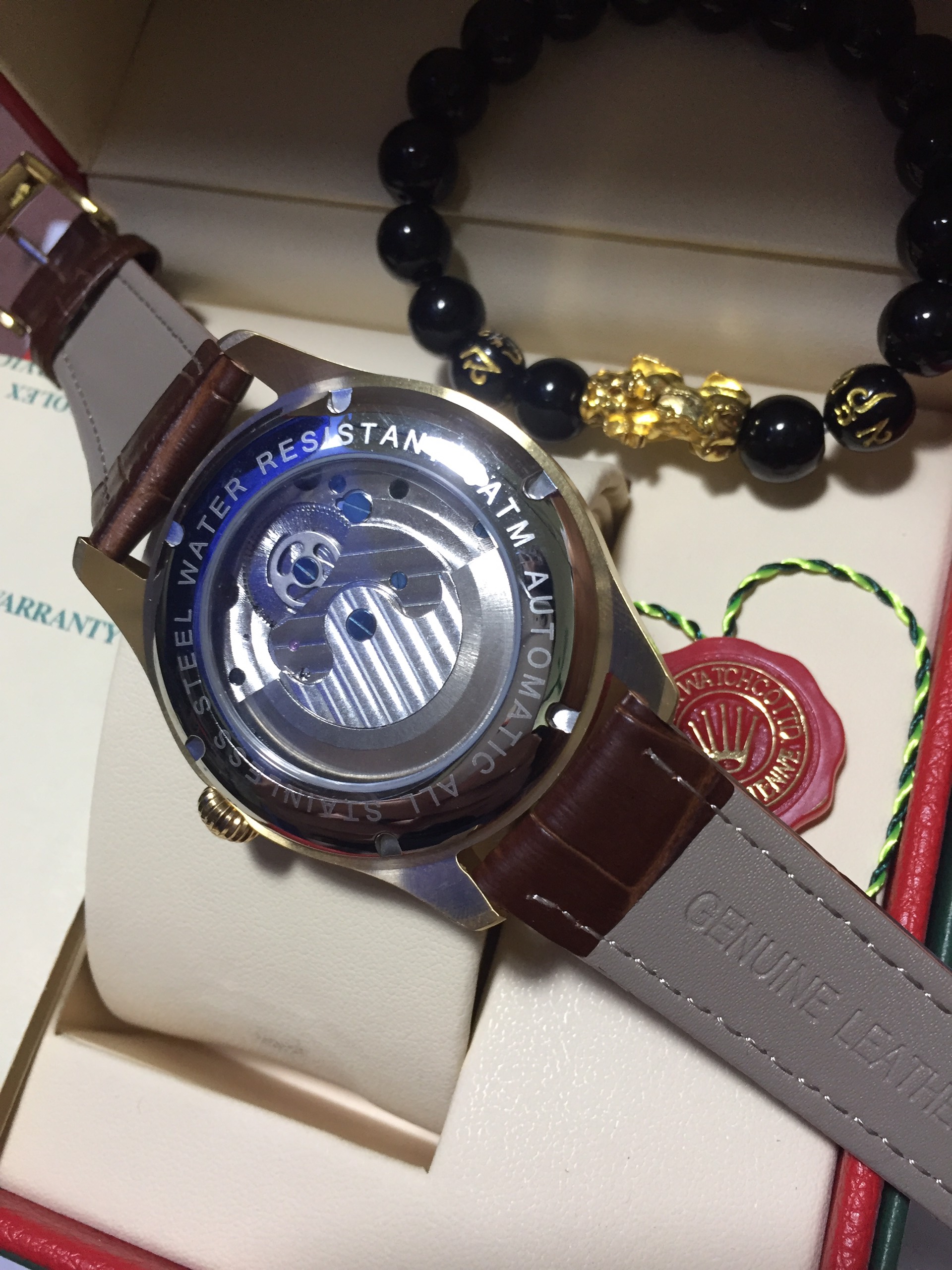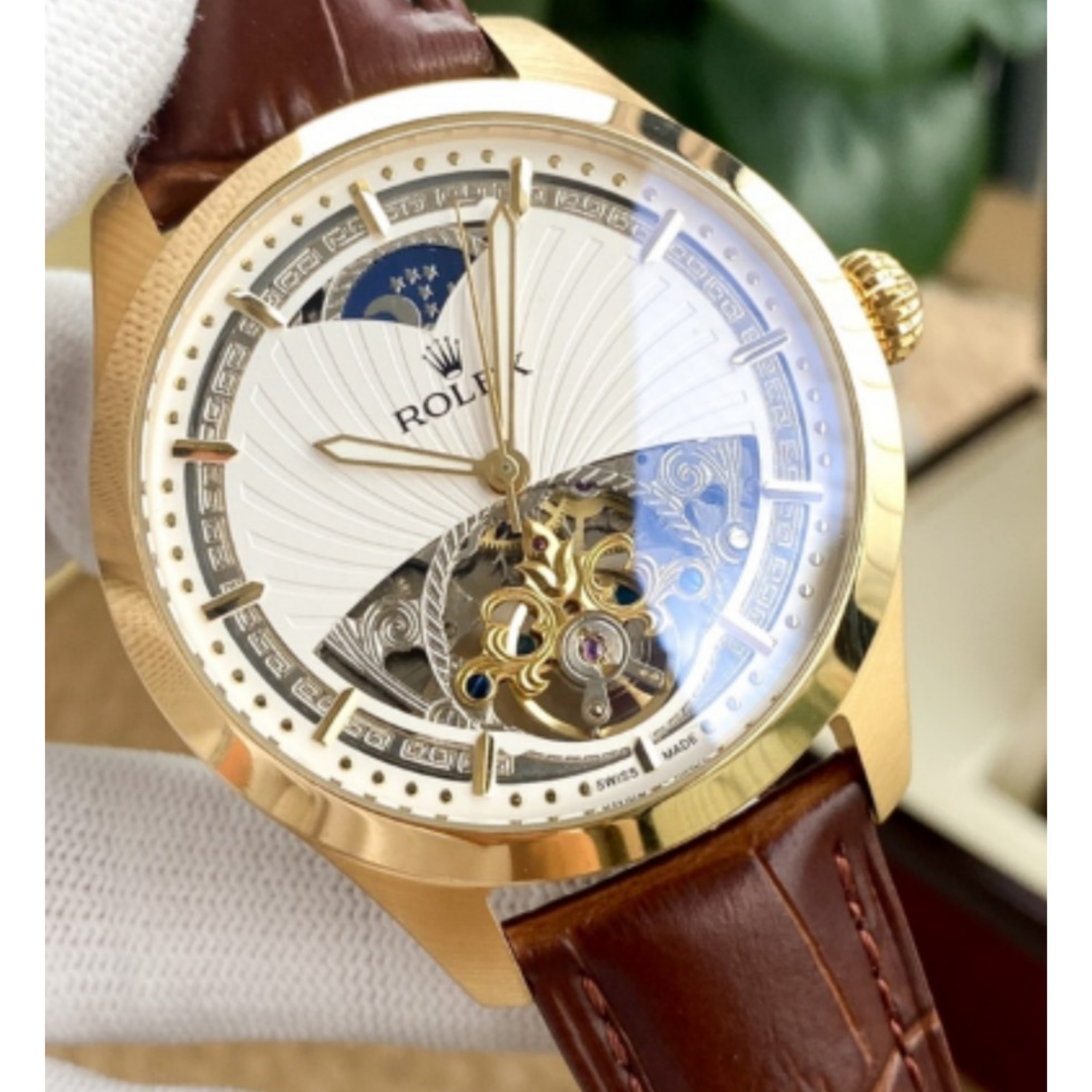 Đồng Hồ RL Nam Automatic Dây Da Mặt Lộ Máy Vàng 40mm