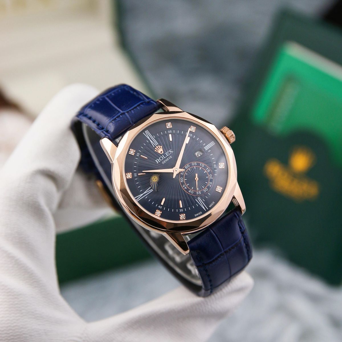 Đồng hồ ro.lex sun moon máy cơ dây da giá sỉ - giá bán buôn