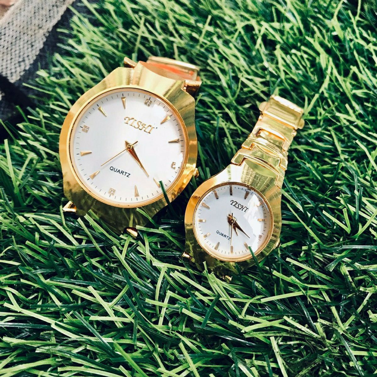 Có 1 màu : vàng ✚ Sản Phẩm : QUARTZ ✚ Tình trạng : mới ✚ Đồng hồ : nam nữ ✚ Kích thước mặt: nam 38mm nữ : 24mm Dày : 5mm ✚ Kích thước dây : nam : 2cm , nữ : 1cm ✚ Chất liệu khung đồng hồ: Thép không gỉ ✚ Chất liệu kính: Chống xước tốt. ✚ Loại dây đeo: Dây kim loại ✚ Chức năng hiển thị: Giờ, Phút, Giây. ✚ Năng lượng: dùng pin ✚ Khả năng chống nước: chống nước nhẹ ✚ Bảo hành: 6 tháng