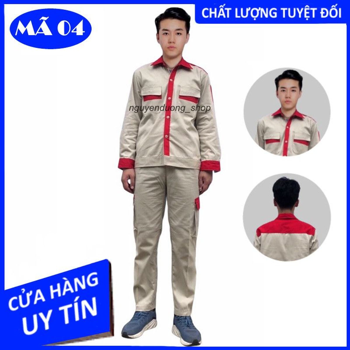 QUẦN ÁO BẢO HỘ LAO ĐỘNG KAKI MÀU GHI SÁNG PHỐI ĐỎ