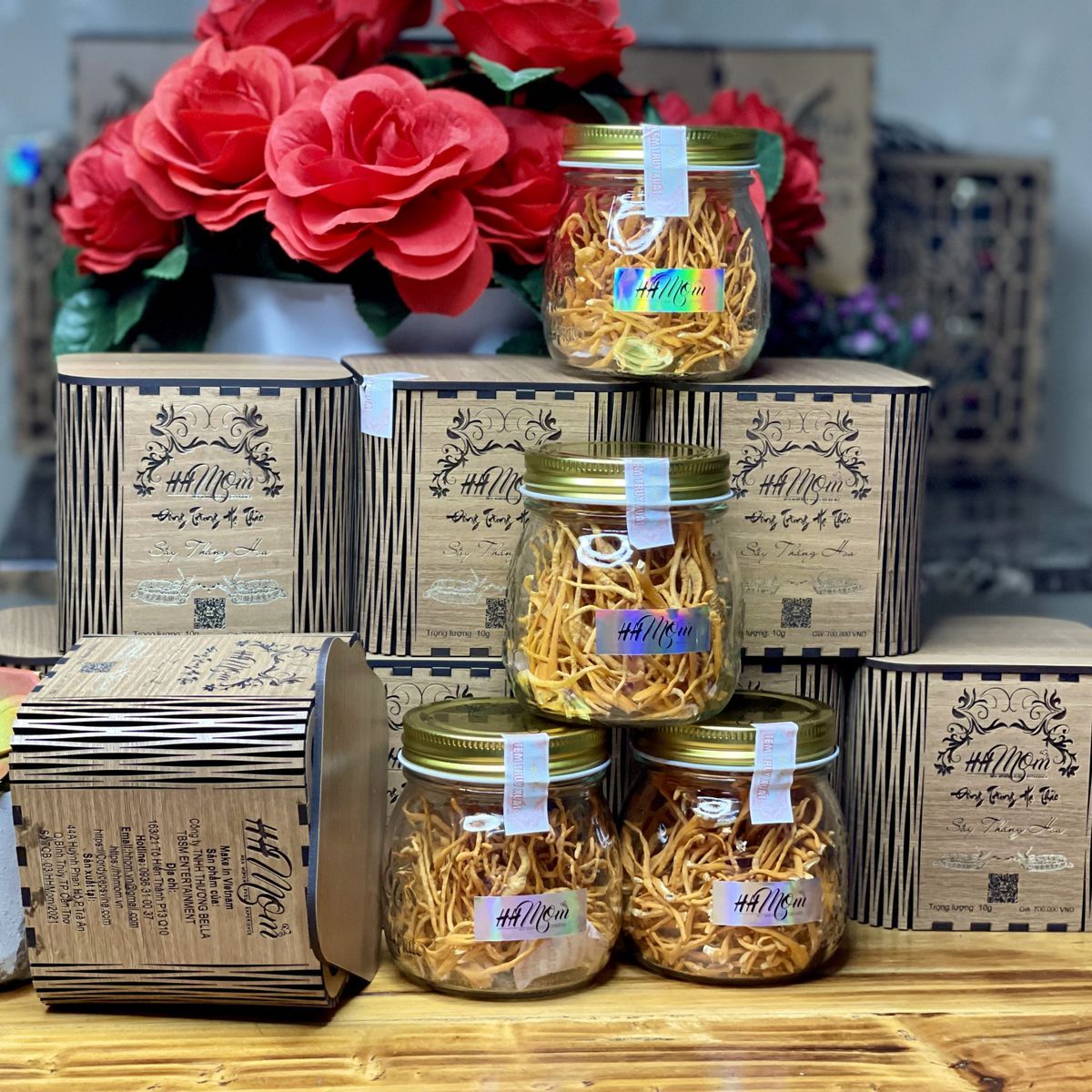 Đông trùng hạ thảo HHMom chất lượng cao, sở hữu hàm lượng Cordycepin và Adenosine cao vượt trội, tốt nhất thị trường và tương đương đông trùng hạ thảo tự nhiên. Đây là sản phẩm tại Việt Nam nuôi cấy theo quy trình bán tự nhiên đột phá. Đông trùng hạ thảo HHMom đa dạng sản phẩm, thiết kế sang trọng, là sản phẩm được yêu thích của đông đảo người tiêu dùng trong và ngoài nước.