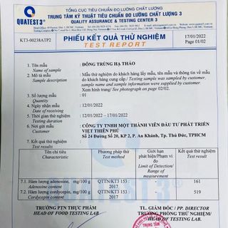 Toàn bộ sản phẩm Đông Trùng Hạ Thảo nhà VIỆT THIÊN PHÚ đều đã qua kiểm nghiệm và đạt tiêu chuẩn quốc tế về quản lý chất lượng và an toàn thực phẩm ISO 22000:2018.