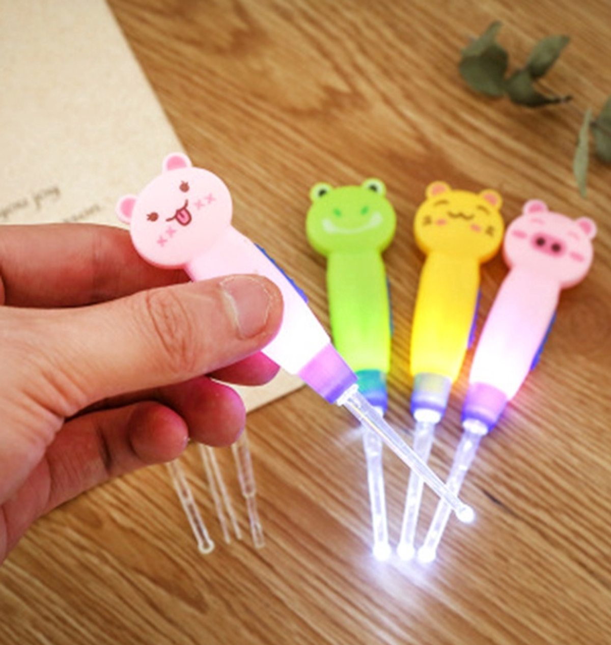 ** Dụng cụ lấy ráy tai có đèn hình thú được thiết kế nhỏ gọn với đầu dò được gắn đèn led ánh sáng màu trắng xanh, giúp bạn có thể nhìn rõ hơn vào bên trong tai, việc lấy ráy tai sẽ an toàn hơn, tiện hơn và sạch hơn.