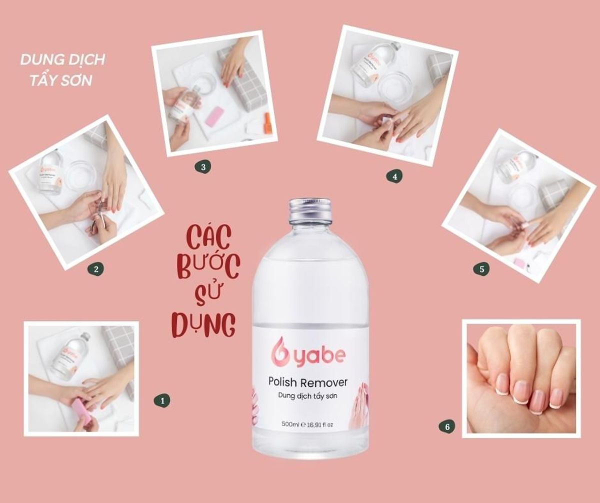 Ngoài ra, Yabe Polish Remover còn thể sử dụng để lau chùi đi các vệt sơn và các vết trầy trên vật dụng thường ngày. Sản phẩm này cũng được tận dụng để pha màu sơn trong công nghiệp.