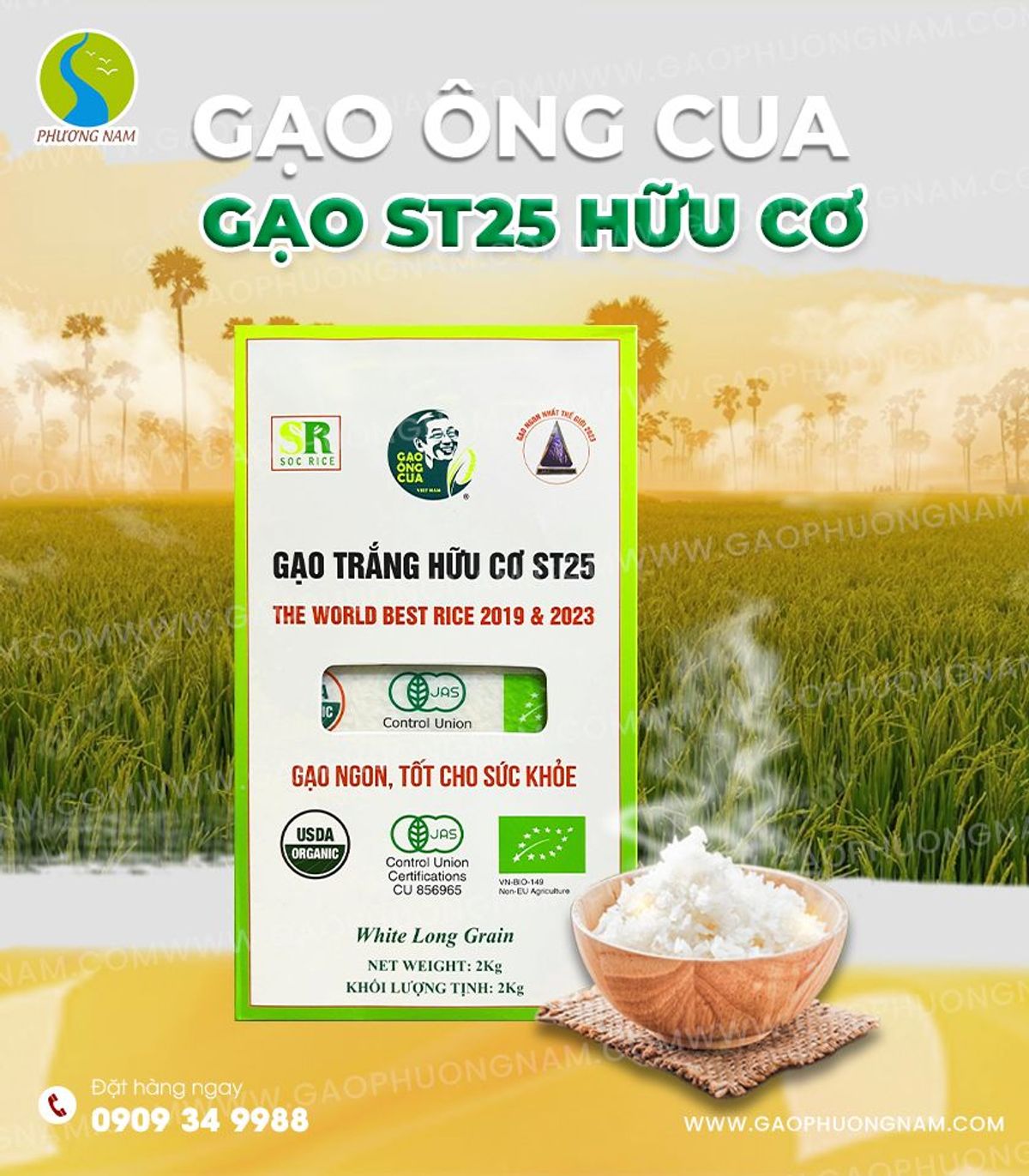 Gạo ST25 Hữu Cơ Phù Hợp Với Ai?Tại TP.HCM, Công ty Cổ phần Lương thực Phương Nam là đơn vị được DNTN Hồ Quang Trí xác nhận phân phối Gạo ST25 chính hãng – thương hiệu Gạo Ông Cua.