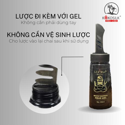 +An toàn cho da, làm đều màu, dưỡng ẩm, không chỉ vậy Gel vuốt tóc L’DORA Beauty còn ngăn ngừa lão hóa và lấy đi bụi bẩn trên bề mặt da đầu. Làm giảm thiểu tình trạng gãy rụng, kích thích mọc tóc, làm mịn, nuôi dưỡng tóc từ bên trong nhờ sự góp mặt của Panthenol (vitamin B5). Ngoài ra hợp chất VP/VA copolyme trong sản phẩm giúp tóc vào nếp và giữ được độ mềm mại tự nhiên. Thiết kế sản phẩm có sẵn lược rất tiện lợi, người tiêu dùng không cần chạm vào gel vuốt tóc trong suốt thời gian tạo kiểu.