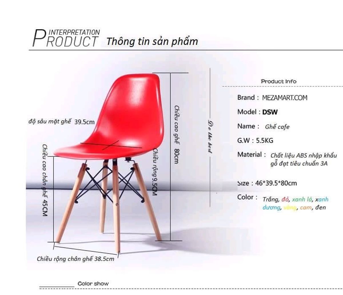 Ghế eames chân gỗ sồi giằng thép và mặt nhựa ABS