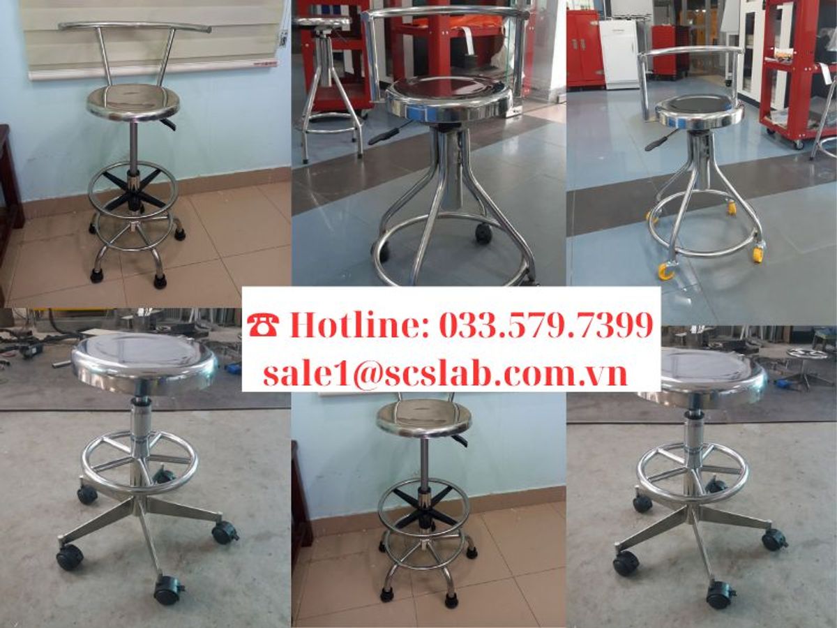 GHẾ INOX PHÒNG THÍ NGHIỆM - TY REN XOAY THỦ CÔNG BẰNG TAY 360 ĐỘ