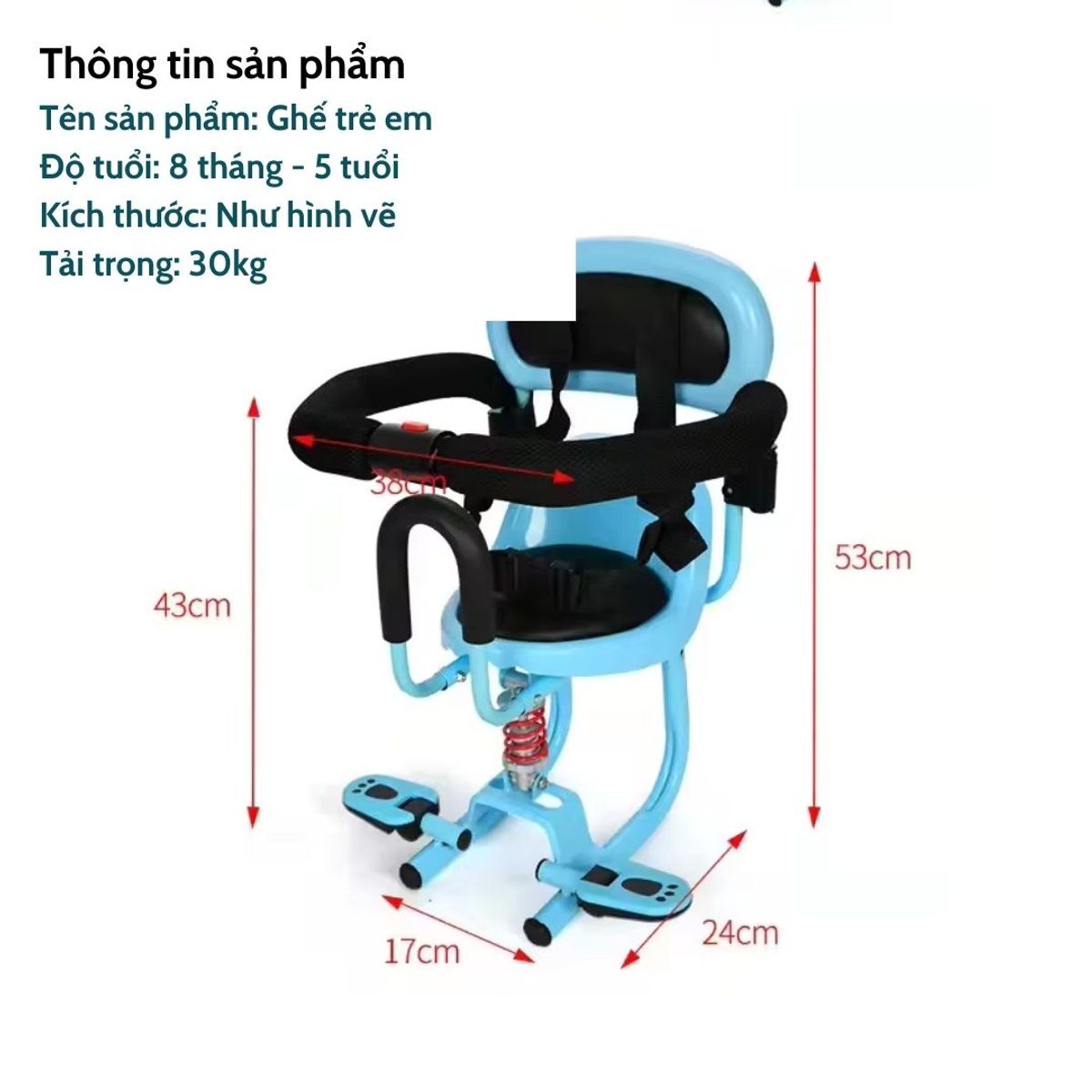 Ghế ngồi xe điện xe máy cho bé có tùy chỉnh độ cao CS-02 hàng nhập khẩu có đầy đủ đai bảo vệ, đệm êm bền.