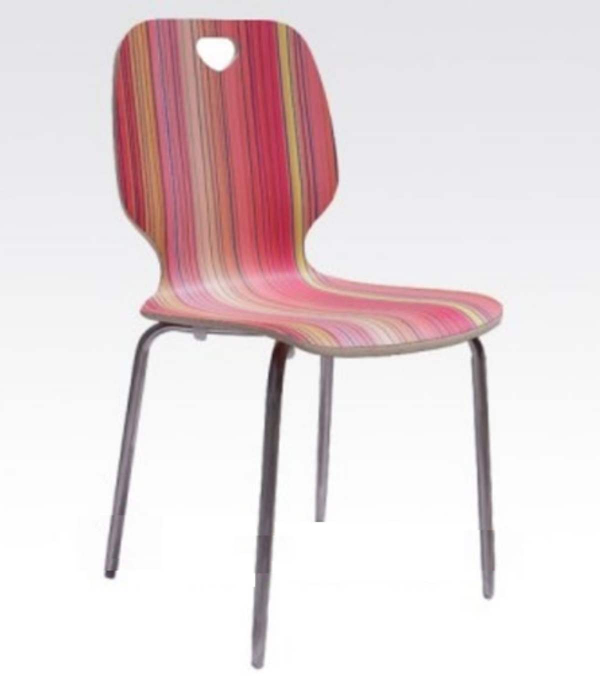 Khung inox 201, ống phi 22*1.2 mm, lưng và mặt ngồi bằng gỗ cao ép laminate đơn sắc uốn cong