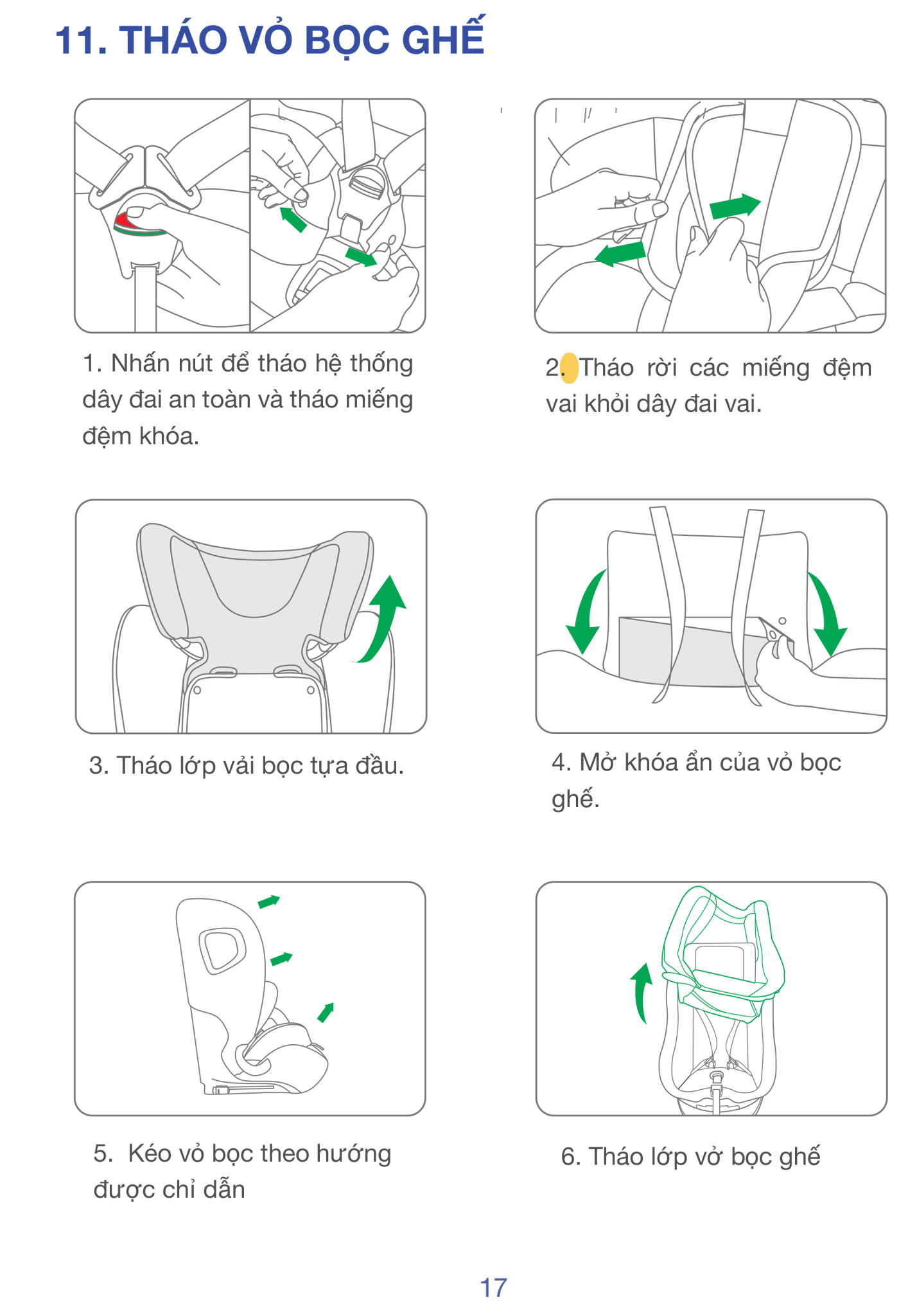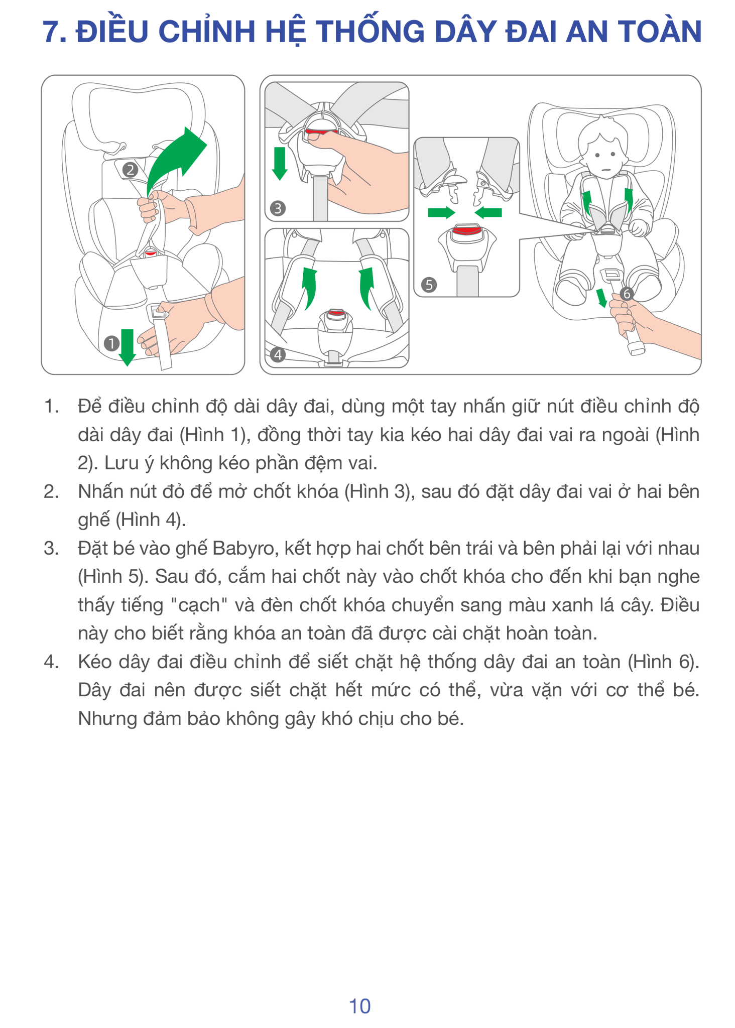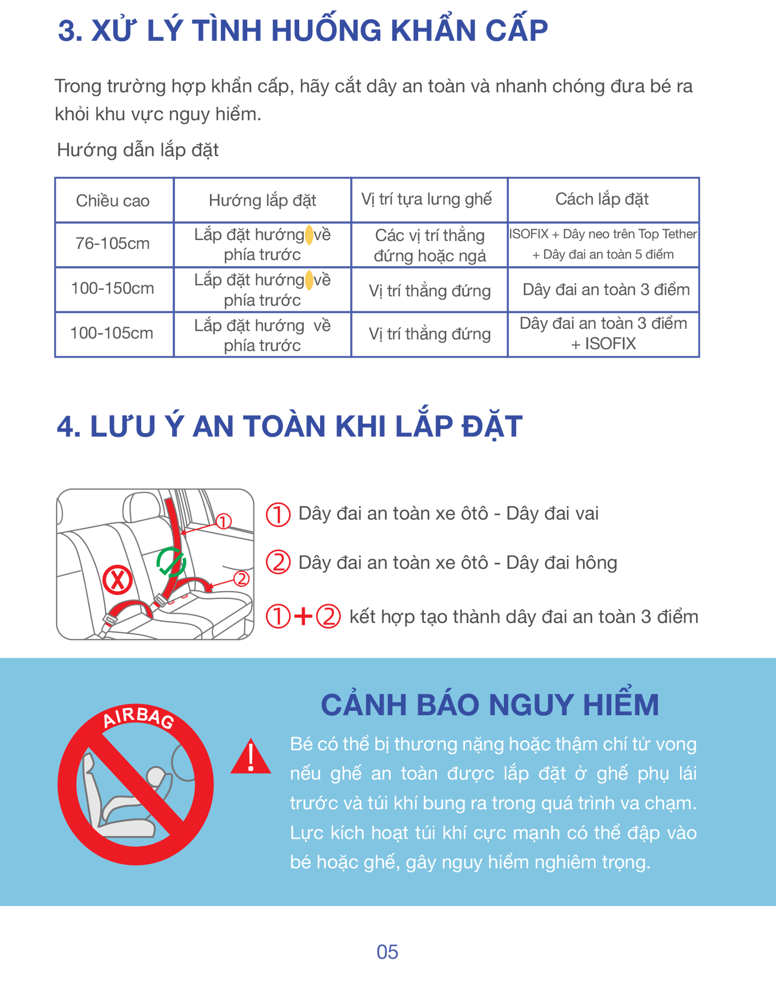 • Trẻ dùng đai xe, ghế tiếp tục nâng đỡ & bảo vệ hông + đầu.